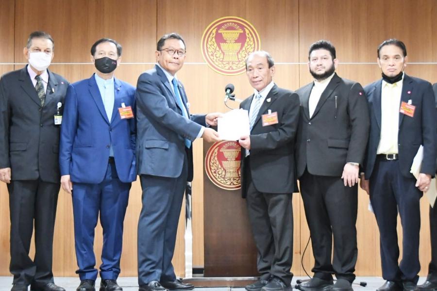 นายศุภชัย ใจสมุทร ส.ส.พรรคภูมิใจไทย และคณะ รับยื่นหนังสือจากรศ.ดร.ปกรณ์ ปรียากร ผู้อำนวยการสถาบัน มาตรฐานฮาลาลแห่งประเทศไทย