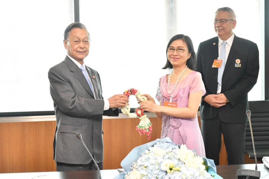 นายชวน หลีกภัย ประธานรัฐสภาและประธานสภาผู้แทนราษฎร ให้การต้อนรับ