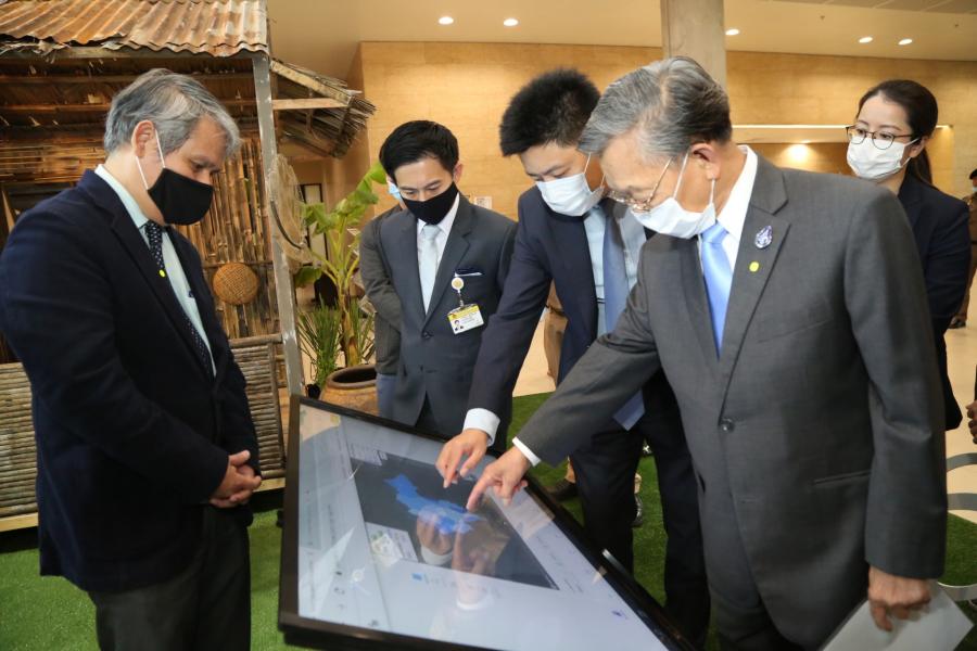 (Touch Screen) ขนาด ๕๐ นิ้ว เพื่อรายงานสถานการณ์ความเหลื่อมล้ำ ทางการศึกษาในพื้นที่ต่าง ๆ ของประเทศและจำนวนนักเรียนยากจนพิเศษ ที่เพิ่มขึ้นหลังได้รับ ผลกระทบจากวิกฤตโควิด-๑๙ พร้อมทั้งเยี่ยมชมนิทรรศการ Big Number สรุปสถานการณ์ความเหลื่อมล้ำทางการศึกษาและมาตรการ ช่วยเหลือกลุ่มเป้าหมายผ่านกองทุนเพื่อความเสมอภาคทางการศึกษา โดยมี นายอิสระ เสรีวัฒนวุฒิ สมาชิกสภาผู้แทนราษฎร นายแพทย์สุกิจ อัถโถปกรณ์ ที่ปรึกษาประธานสภาผู้แทนราษฎร นายสมบูรณ์ อุทัยเวียนกุล เลขานุการประธานสภาผู้แทนราษฎร และ นางสาวศิริภา อินทวิเชียร ผู้ช่วยเลขานุการประธานสภาผู้แทนราษฎร ร่วมชมนิทรรศการ |