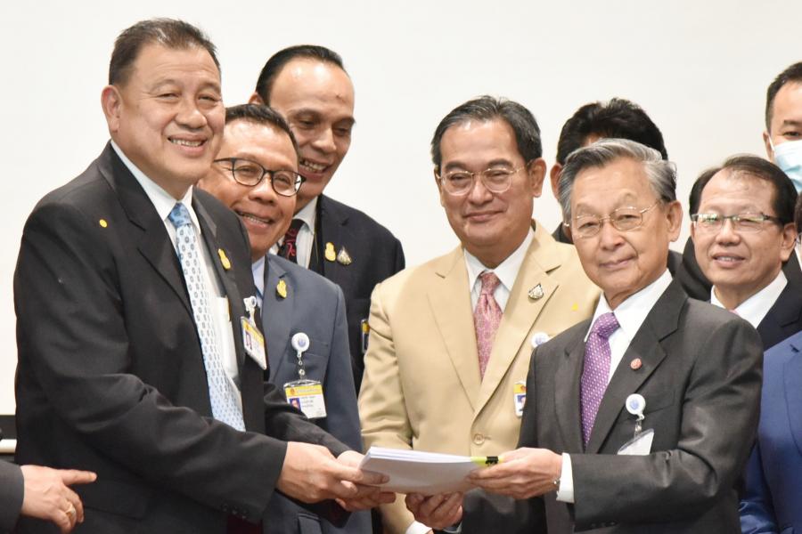 วันอังคารที่ ๑ กันยายน ๒๕๖๓ เวลา ๑๓.๓๐ นาฬิกา ณ ห้องประชุม ประธานสภาผู้แทนราษฎร ชั้น ๓ อาคารรัฐสภา นายชวน หลีกภัย ประธานสภาผู้แทนราษฎร รับยื่นญัตติร่างแก้ไขรัฐธรรมนูญ จากนายวิรัช รัตนเศรษฐ ประธานคณะกรรมการประสานงานสภาผู้แทนราษฎร (วิปรัฐบาล) พร้อมด้วย สมาชิกสภาผู้แทนราษฎร พรรคร่วมรัฐบาล ซึ่งสาระสำคัญของร่างแก้ไขรัฐธรรมนูญ ของพรรคร่วมรัฐบาล คือ การเสนอแก้ไขมาตรา ๒๕๖ นำไปสู่การตั้งสภาร่างรัฐธรรมนูญ (ส.ส.ร.) จำนวน ๒๐๐ คน เพื่อมายกร่างรัฐธรรมนูญฉบับใหม่ โดยไม่มีการแก้ไข มาตรา ๑ และ ๒ ส่วนที่มาของ ส.ส.ร. จำนวน ๒๐๐ คน นั้น มาจากการเลือกตั้ง จากประชาชน ๑๕๐ คน ส่วนอีก ๕๐ คน มาจากสมาชิกรัฐสภาคัดเลือก แบ่งเป็น มาจากที่ประชุมอธิการบดีแห่งประเทศไทยคัดเลือก จำนวน ๒๐ คน จากนักวิชาการ สายต่าง ๆ จำนวน ๒๐ คน และนักเรียน นิสิต นักศึกษาเลือกตัวแทนมาอีกจำนวน ๑๐ คน โดยกำหนดระยะเวลายกร่างรัฐธรรมนูญให้แล้วเสร็จภายใน ๒๔๐ วัน ทั้งนี้ นายชวน หลีกภัย ประธานสภาผู้แทนราษฎร กล่าวว่า จะนำญัตติดังกล่าวบรรจุ ในระเบียบวาระเพื่อพิจารณาในวันที่ ๒๑ - ๒๒ ก.ย. ๖๓ ร่วมกับญัตติของพรรคร่วมฝ่ายค้าน ที่ได้ยื่นเสนอมาก่อนหน้านี้ เนื่องจากเป็นเรื่องทำนองเดียวกัน |