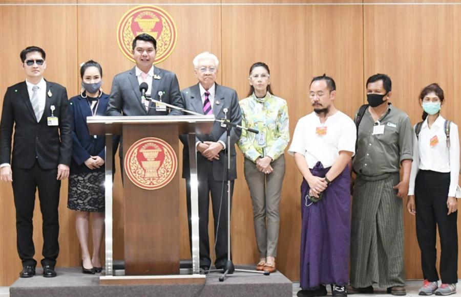 นายพิเชษฐ สถิรชวาล ส.ส. พรรคประชาธรรมไทย นายมงคลกิตติ์ สุขสินธารานนท์ ส.ส. พรรคไทยศรีวิไลย์ และนายพีระวิทย์ เรื่องลือดลภาค ส.ส. พรรคไทรักธรรม รับยื่นหนังสือจาก น.สพ.บูรณ์ อารยพล ตัวแทนกลุ่มขอคืนไม่ได้ขอทาน และคณะ