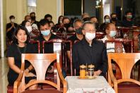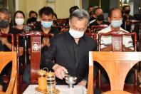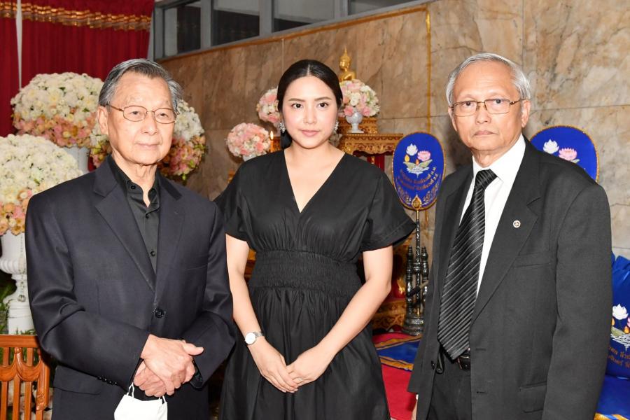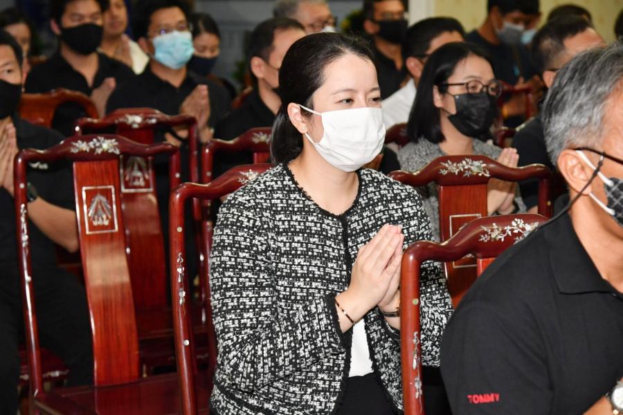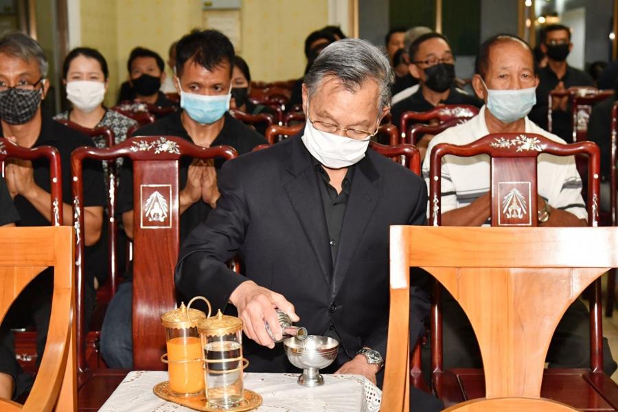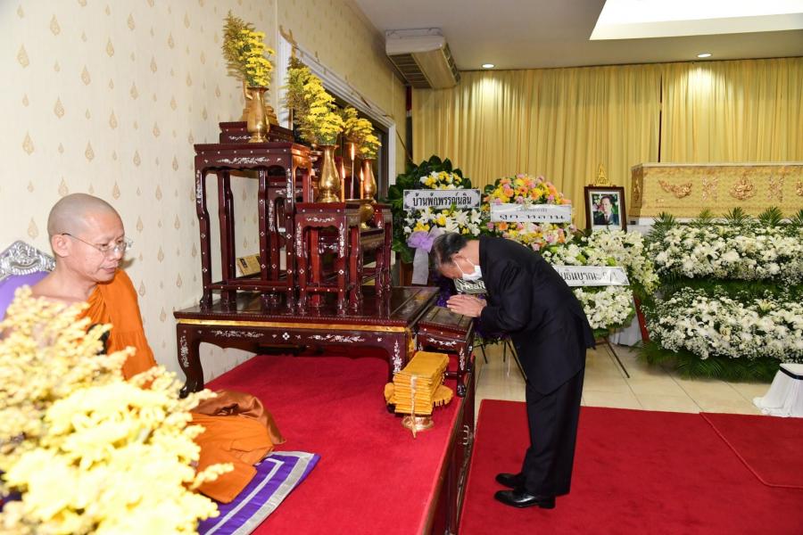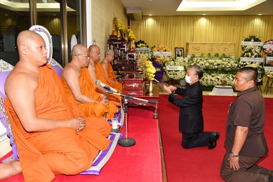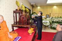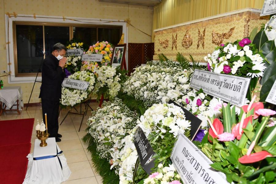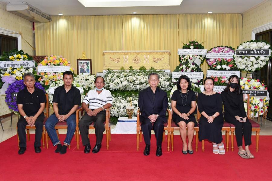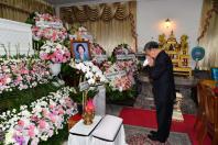 จากนั้น ได้ร่วมเคารพศพ และพูดคุยและให้กำลังใจแก่ครอบครัวและญาติ ผู้เสียชีวิตบริเวณศาลาข้างเคียงเช่น นางกาญจนา จินดาวัฒน์ ศิลปินและนักแสดง โดยมี นางสาวศิริภา อินทวิเชียร ผู้ช่วยเลขานุการประธาน สภาผู้แทนราษฎรร่วมพิธี |