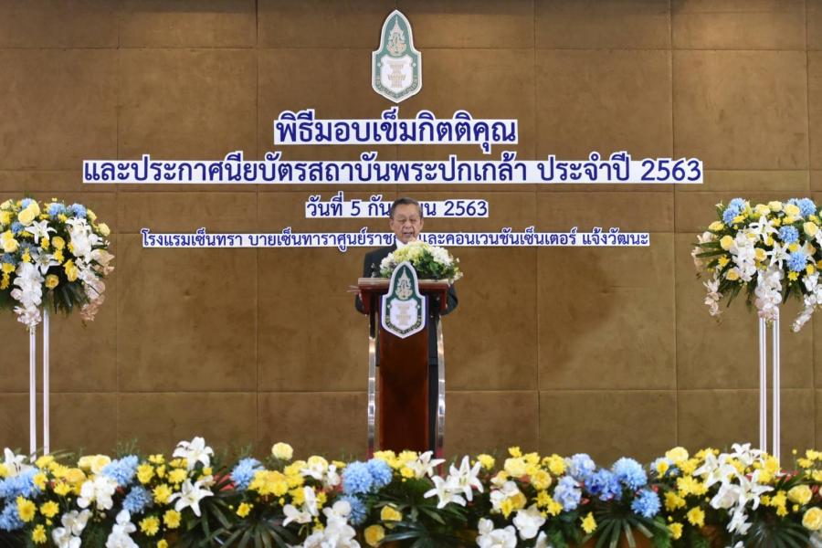 | วันเสาร์ที่ ๕ กันยายน ๒๕๖๓ เวลา ๑๔.๐๐ นาฬิกา ณ ห้องวายุภักษ์ ๕ - ๗ ชั้น ๕ ศูนย์ประชุมวายุภักษ์ โรงแรมเซ็นทราศูนย์ราชการเฉลิมพระเกียรติ ถ.แจ้งวัฒนะ กรุงเทพฯ นายชวน หลีกภัย ประธานรัฐสภา ในฐานะประธานสภาสถาบันพระปกเกล้า เป็นประธานในพิธีมอบเข็มกิตติคุณและประกาศนียบัตรสถาบันพระปกเกล้า ประจำปี ๒๕๖๓ ให้แก่ผู้สำเร็จการอบรม หลักสูตรต่าง ๆ ได้แก่ ๑. หลักสูตรประกาศนียบัตรแนวคิดพื้นฐานการจัดการความขัดแย้งด้วยสันติวิธี ๒. หลักสูตรประกาศนียบัตรธรรมาภิบาลของผู้บริหารระดับกลาง รุ่นที่ ๒๑ ๓. หลักสูตรประกาศนียบัตรธรรมาภิบาลสำหรับผู้บริหารสถานศึกษาสำนักงาน การศึกษาขั้นพื้นฐาน (สพฐ.) (โรงเรียนสุจริต) รุ่นที่ ๕ ๔. หลักสูตรประกาศนียบัตรสิทธิมนุษยชนสำหรับนักบริหารระดับสูง รุ่นที่ ๑ ๕. หลักสูตรประกาศนียบัตรไทยกับประชาคมอาเซียนในเศรษฐกิจการเมืองโลก รุ่นที่ ๘ และรุ่นที่ ๙ ๖. หลักสูตรประกาศนียบัตรผู้นำยุคใหม่ในระบอบประชาธิปไตย รุ่นที่ ๙ โดยมี นายอิสระ เสรีวัฒนวุฒิ สมาชิกสภาผู้แทนราษฎร และ น.ส. ศิริภา อินทวิเชียร ผูช่วยเลขานุการ ประธานสภาผู้แทนราษฎร และคณะผู้บริหารสถาบันพระปกเกล้า ร่วมพิธี