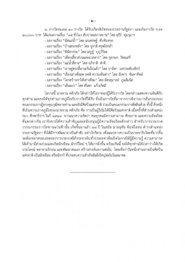 กล่าวรายงาน โดยมี คณะทำงานประธานสภาผู้แทนราษฎร คณะกรรมการรางวัล