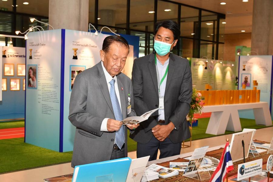 นายวันมูหะมัดนอร์ มะทา และนายโกวิทย์ ธารณา อดีตสมาชิกสภาผู้แทนราษฎร พร้อมด้วยนายสมบูรณ์ อุทัยเวียนกุล เลขานุการประธานสภาผู้เเทนราษฎร และนายณัฏฐกฤษฎ์ วงศ์เจริญ ที่ปรึกษาด้านระบบงานนิติบัญญัติ ร่วมเยี่ยมชมการจัดแสดงนิทรรศการ ๗๐ ปี แห่งสมาชิกภาพของรัฐสภาไทยในสหภาพรัฐสภา (Inter-Parliamentary Union หรือ IPU)