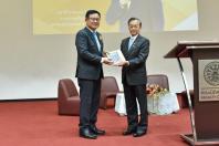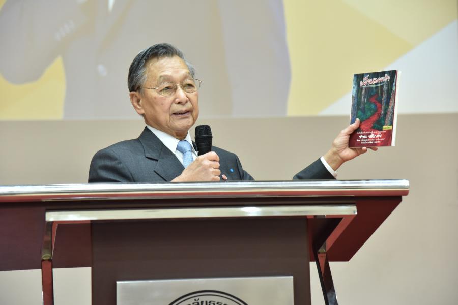 วันศุกร์ที่ ๑๘ กันยายน ๒๕๖๓ เวลา ๑๔.๓๐ นาฬิกา ณ หอประชุมศรีบูรพา มหาวิทยาลัยธรรมศาสตร์ ท่าพระจันทร์ นายชวน หลีกภัย ประธานรัฐสภา