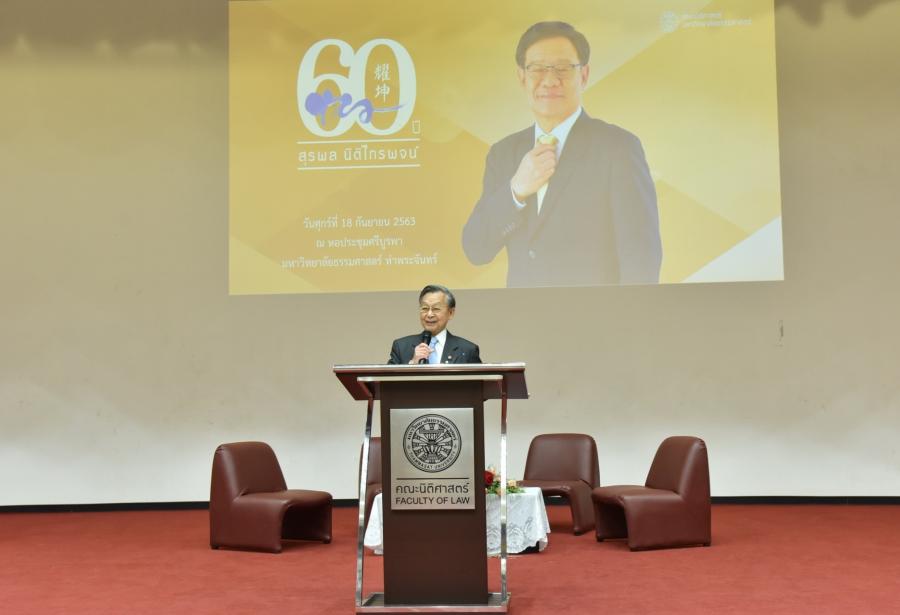 ซึ่งจะเกษียณอายุราชการในวันที่ ๓๐ ก.ย. ๖๓ ในงานแสดงมุทิตาจิต ที่จัดขึ้นเพื่อเชิดชู ศ.ดร.สุรพล นิติไกรพจน์ ในฐานะผู้มีคุณูปการ ต่อมหาวิทยาลัยธรรมศาสตร์โดยมี น.ส.ศิริภา อินทวิเชียร ผู้ช่วยเลขานุการ ประธานสภาผู้แทนราษฎร เข้าร่วมในงาน