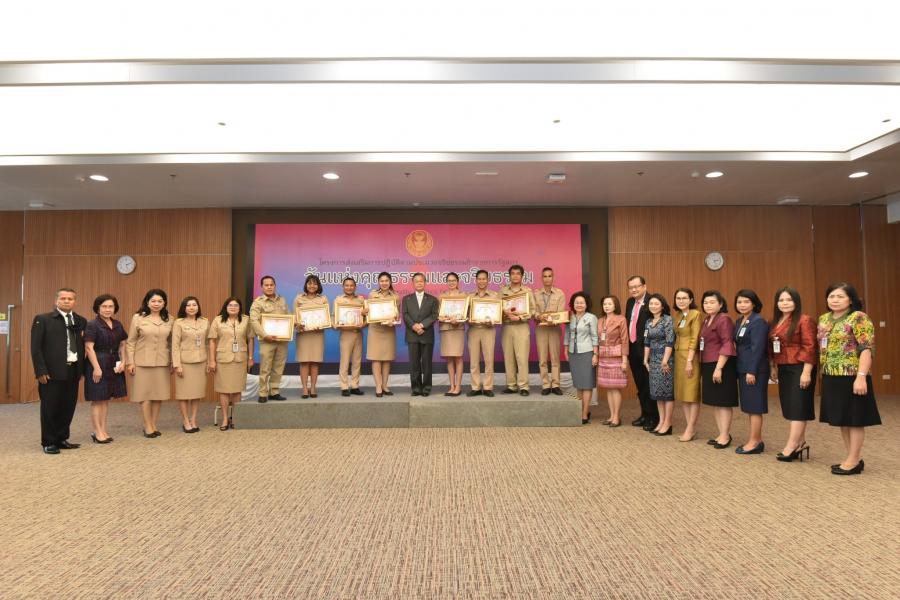 (Morality & Ethics day) พิธีมอบเข็มเชิดชูเกียรติ โล่ยกย่องประกาศเกียรติคุณและ เกียรติบัตรแก่ผู้มีคุณธรรมและจริยธรรมดีเด่น และสำนักที่มีผลงานด้านการส่งเสริม