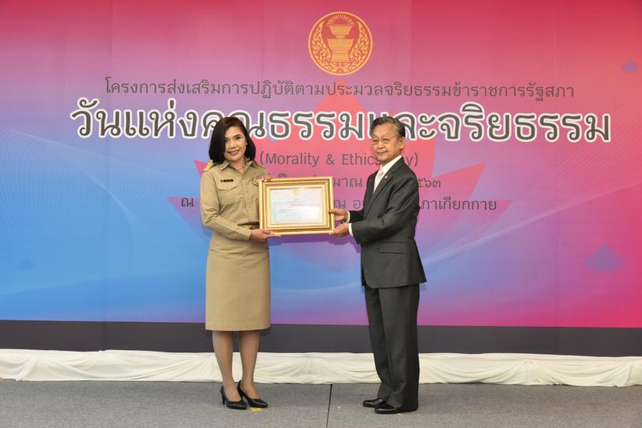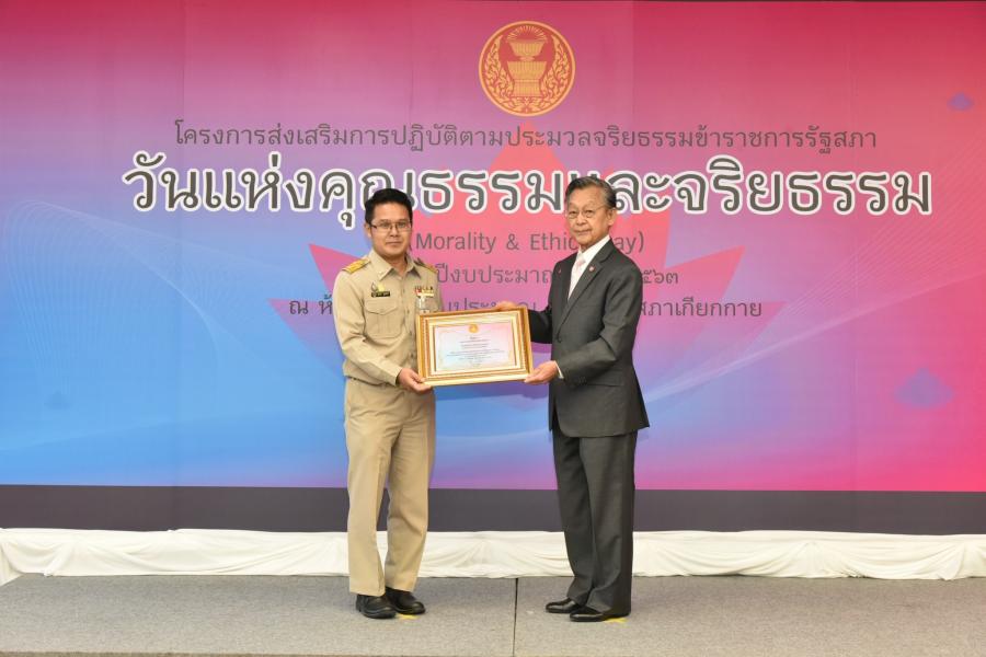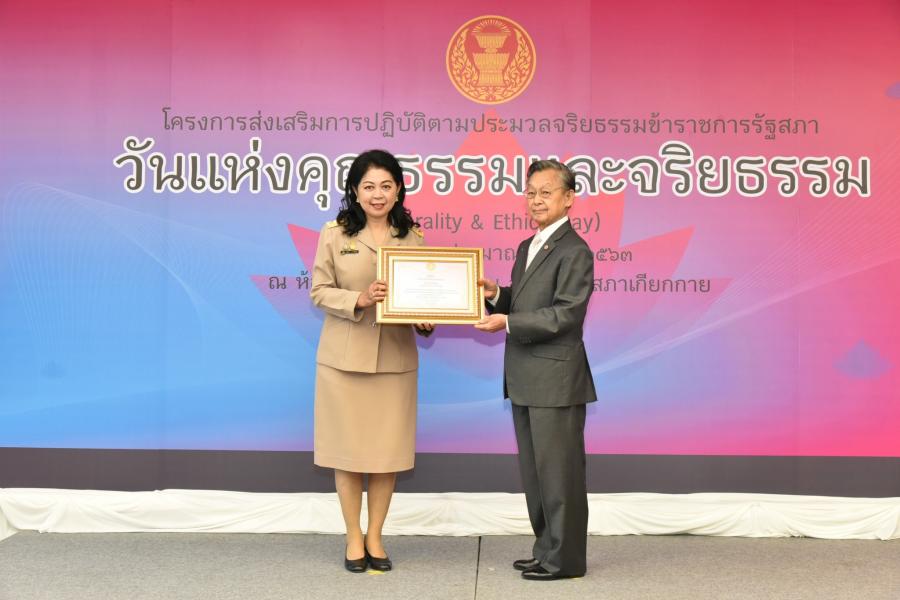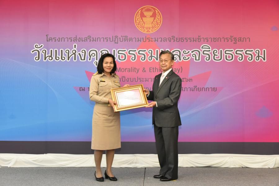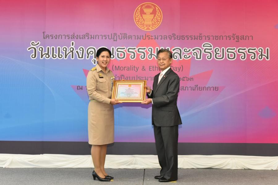 และจริยธรรมดีเด่น และสำนักที่มีผลงานด้านการส่งเสริมตามประมวลจริยธรรม ข้าราชการรัฐสภา และความโปร่งใสที่ได้รับรางวัลการได้รับรางวัลที่ทรงเกียรตินี้
