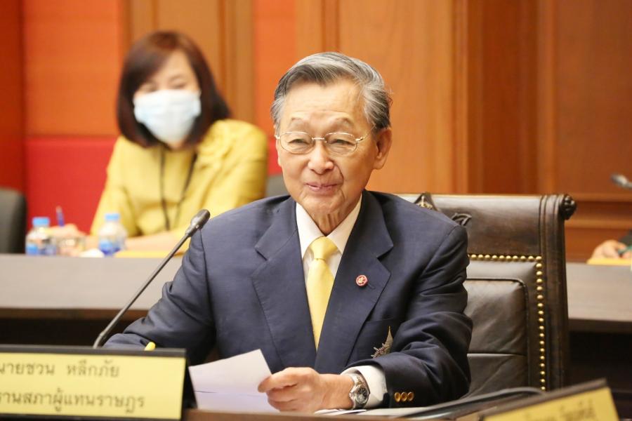 ในการนี้ นายชวน หลีกภัย ประธานสภาผู้แทนราษฎร ได้มอบต้นยมชวน