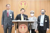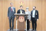 โฆษกคณะ กมธ.วิสามัญพิจารณาศึกษาแนวทางการบริหารจัดการลุ่มน้ำทั้งระบบ และคณะ ร่วมกันแถลงข่าว