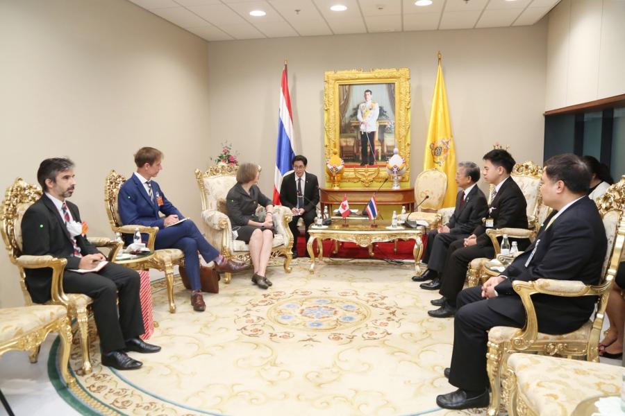 ประธานรัฐสภาที่ให้เข้าเยี่ยมคารวะในวันนี้ พร้อมทั้งหารือแลกเปลี่ยนในประเด็นด้าน สิ่งแวดล้อม ซึ่งแคนาดามีแผนเลิกใช้พลาสติกแบบ Single - Use Plastic เช่น ถุงพลาสติก แก้วกาแฟและขวดต่าง ๆ โดยตั้งเป้าให้เลิกใช้พลาสติกดังกล่าว ในปี ๒๕๖๔ ซึ่งถือเป็นอีกหนึ่งความพยายามในการผลักดันการเลิกใช้ พลาสติกเพื่อลดปริมาณขยะพลาสติกที่กำลังกลายเป็นปัญหาในระดับโลก