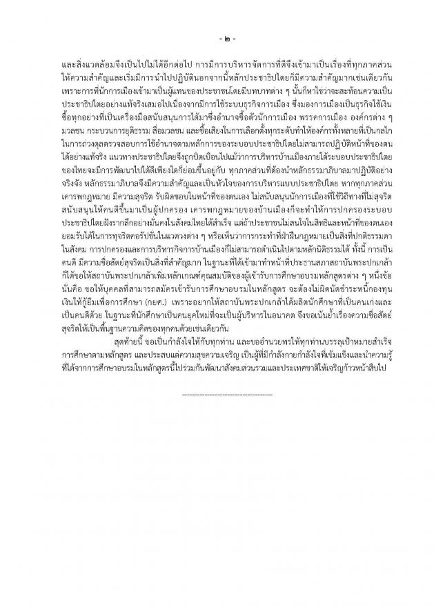 บรรยายพิเศษในหัวข้อ “ธรรมาภิบาล : หัวใจการบริหารในแบบประชาธิปไตย” หลักสูตร