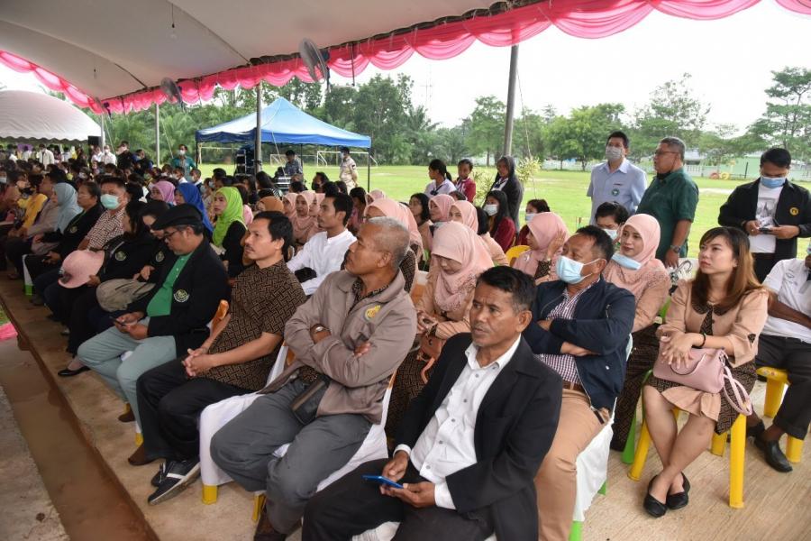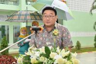 กล่าวรายงานการดำเนินงานโครงการและกล่าวส่งมอบอาคาร นายสนิท แย้มเกษร รองเลขาธิการ