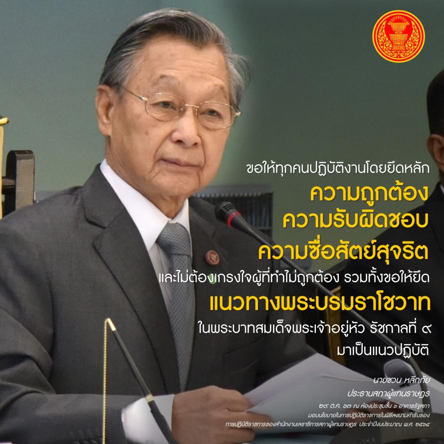 ประธานสภาผู้แทนราษฎร มอบนโยบายให้แก่ผู้บริหารสำนักงานเลขาธิการสภาผู้แทนราษฎร