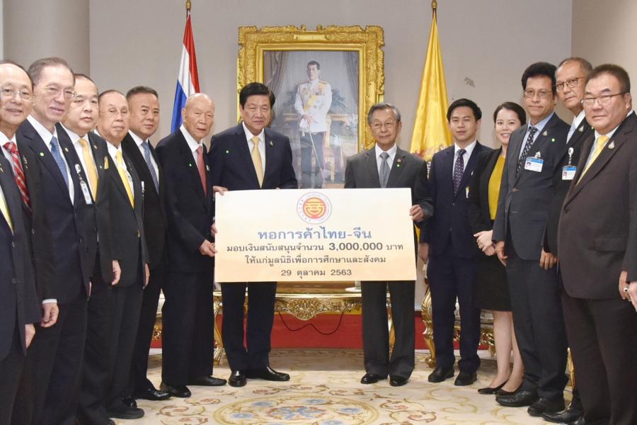 วันพฤหัสบดีที่ ๒๙ ตุลาคม ๒๕๖๓ เวลา ๑๓.๓๐ นาฬิกา ณ ห้องรับรอง ชั้น ๓ อาคารรัฐสภา นายชวน หลีกภัย ประธานรัฐสภาและประธานสภาผู้แทนราษฎร ในฐานะประธานมูลนิธิเพื่อการศึกษาและสังคม รับมอบเงินบริจาคจาก นายณรงค์ศักดิ์ พุทธพรมงคล ประธานหอการค้าไทย - จีน และคณะ จำนวน ๓,๐๐๐,๐๐๐บาท ให้แก่ มูลนิธิเพื่อการศึกษาและสังคม เพื่อนำไปดำเนินการเกี่ยวกับสาธารณประโยชน์ในการ บรรเทาความเดือดร้อนของสังคม อาทิ ภัยธรรมชาติจากเหตุการณ์อุทกภัยที่เกิดขึ้น ในขณะนี้ ซึ่งส่งผลกระทบต่อประชาชนทั่วประเทศในวงกว้าง โดยมี นายอิสระ เสรีวัฒนวุฒิ สมาชิกสภาผู้แทนราษฎร นพ.สุกิจ อัถโถปกรณ์ ที่ปรึกษาประธานสภาผู้แทนราษฎร นายสมบูรณ์ อุทัยเวียนกุล เลขานุการประธานสภาผู้แทนราษฎร และน.ส.ศิริภา อินทวิเชียร ผู้ช่วยเลขานุการประธานสภาผู้แทนราษฎร ร่วมในการดังกล่าว จากนั้น ประธานรัฐสภา ได้มอบโล่ประกาศเกียรติคุณแก่ ประธานหอการค้าไทย - จีน ในโอกาสที่ได้ให้การสนับสนุนช่วยเหลือผู้ประสบอุทกภัยดังกล่าว ในการนี้ ประธานรัฐสภา รับมอบภาพวาดจากประธานหอการค้าไทย - จีน พร้อมทั้งกล่าวขอบคุณ โดยจะนำเงินที่ได้รับ มอบบริจาคไปใช้ให้ตรงตามวัตถุประสงค์ โดยเฉพาะการแก้ไขปัญหาอุทกภัยที่ส่งผลกระทบ และก่อให้เกิดความเดือดร้อนกับประชาชนในหลายพื้นที่ ทั้งนี้จะรายงานผลการดำเนินการ ให้ทางหอการค้าฯ ทราบต่อไป
