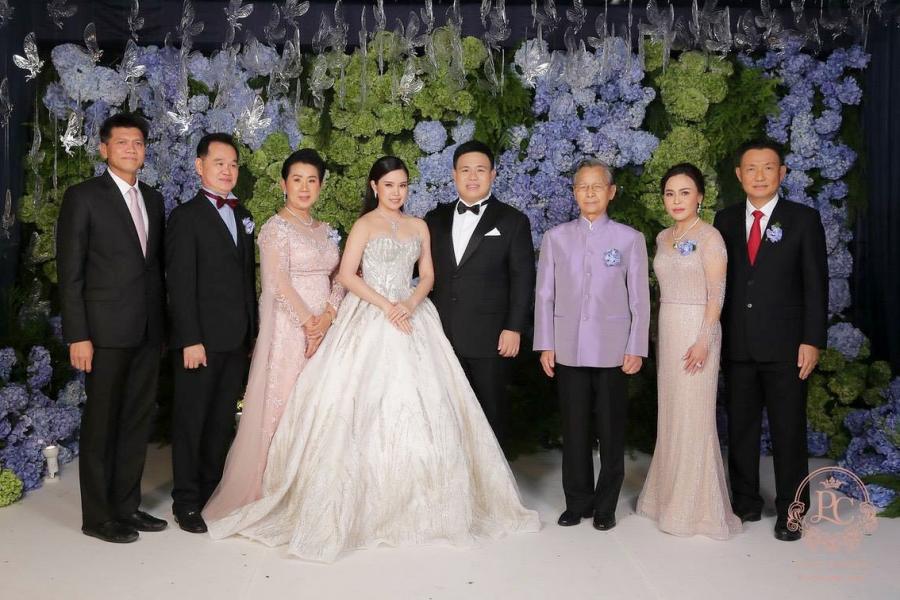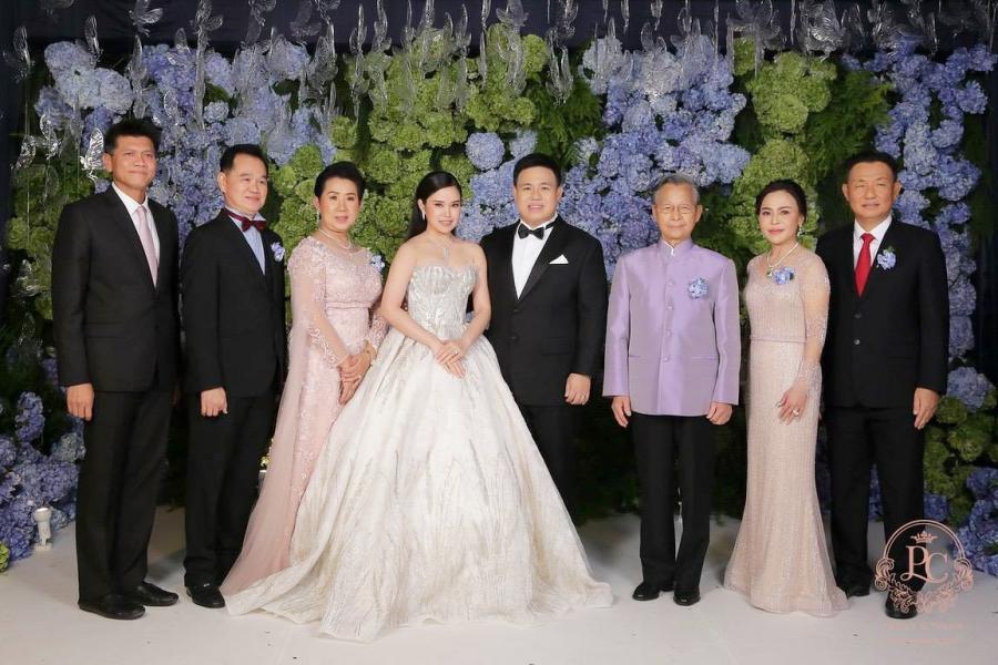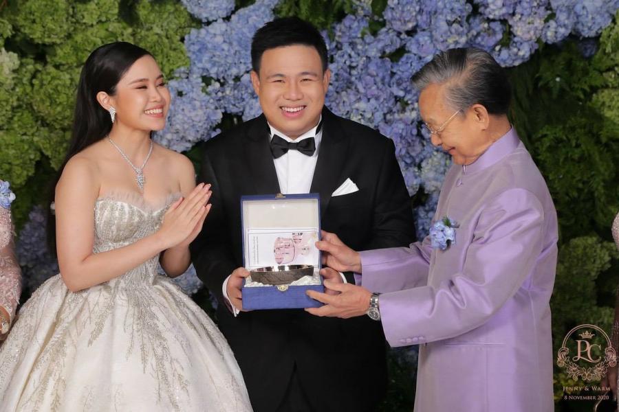 มอบของที่ระลึกเพื่อแสดงความยินดีในงานเลี้ยงฉลองมงคลสมรส ระหว่าง น.ส.ปวีณ์นุช