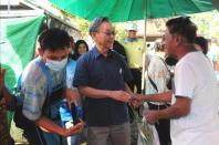 ประชาชนในพื้นที่ พร้อมทั้งมอบหน้ากากอนามัยให้แก่พ่อค้า แม่ค้า คนขับรถรับจ้าง และประชาชน