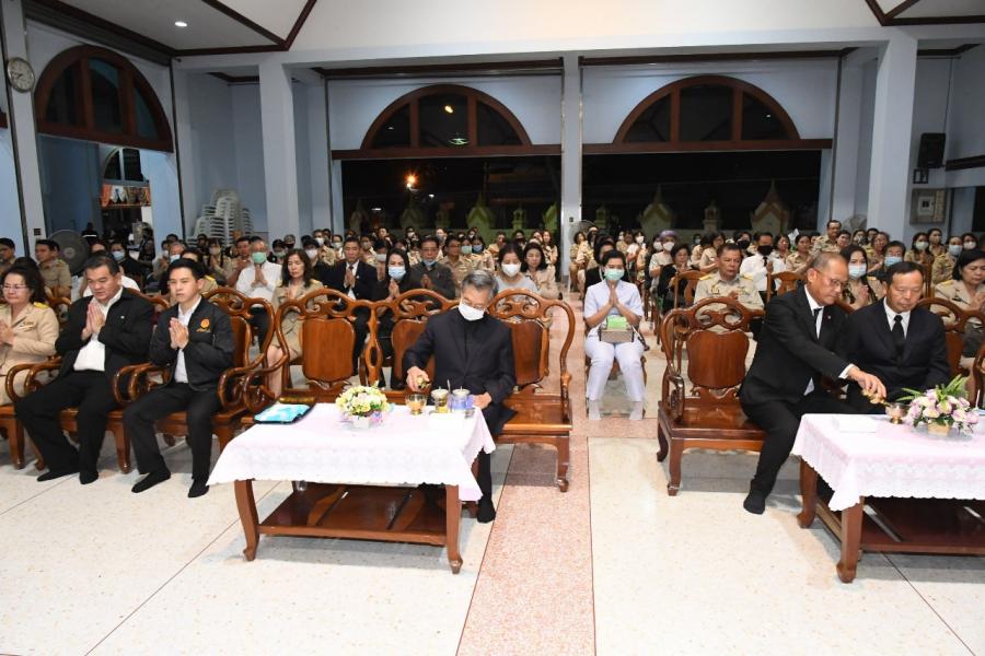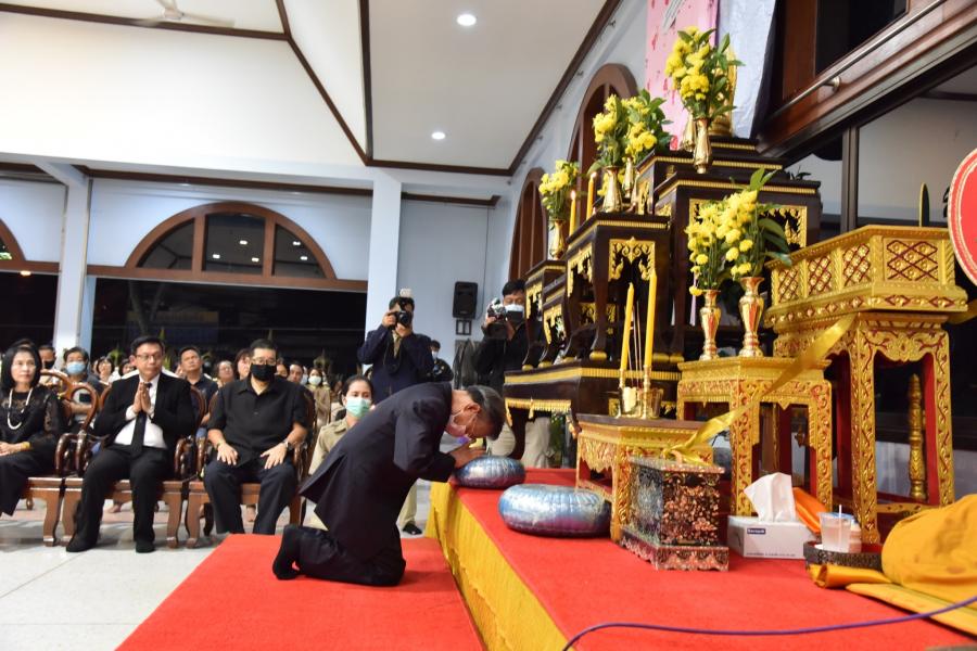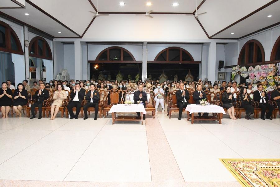 เป็นประธานในพิธีสวดพระอภิธรรมศพ นางเพลินพิศ ศรัณพฤฒิ มารดา