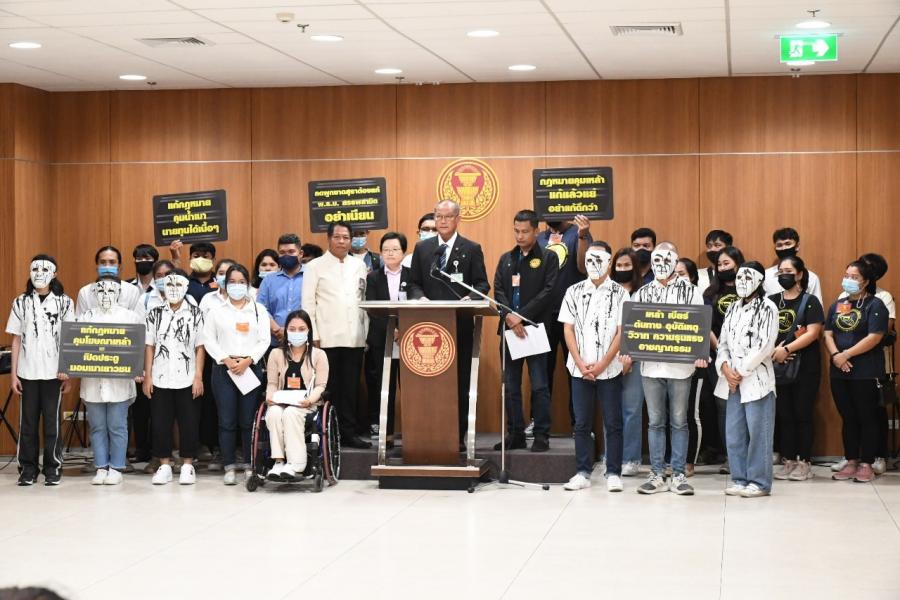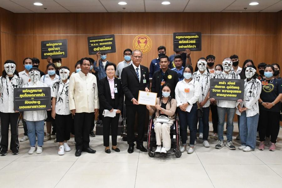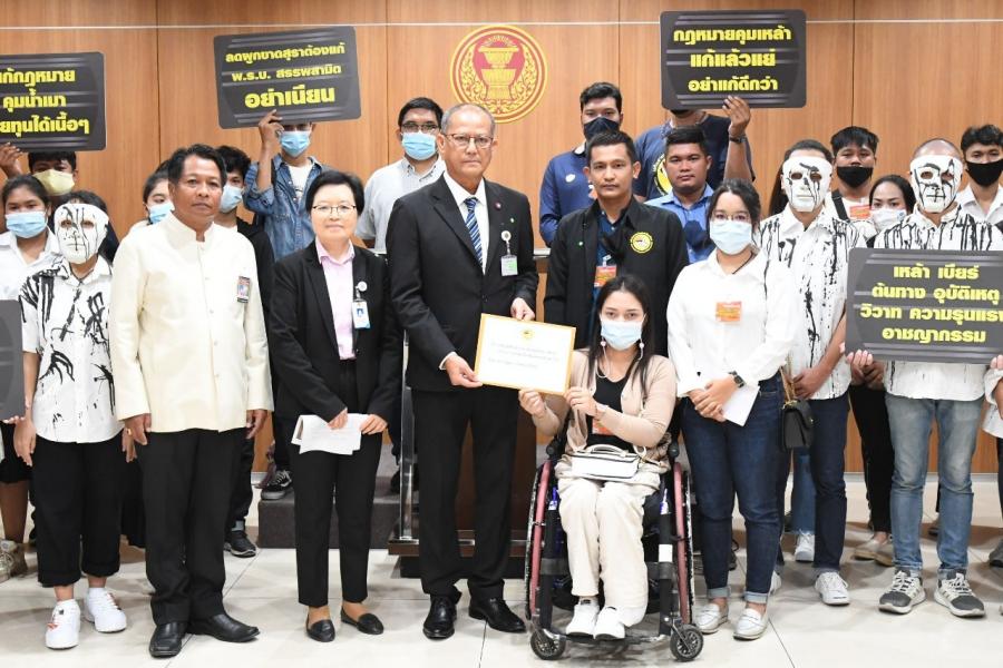 วันอังคารที่ ๒๔ พฤศจิกายน ๒๕๖๓ เวลา ๑๐.๐๐ นาฬิกา ณ ห้องแถลงข่าว ชั้น ๑ อาคารรัฐสภา นายสมบูรณ์ อุทัยเวียนกุล เลขานุการประธานสภาผู้แทนราษฎร พร้อมด้วย นางสาวผ่องศรี ธาราภูมิ คณะทำงานทางการเมืองของประธานสภาผู้แทน ราษฎร รับยื่นหนังสือจากนางสาววิกานดา ผิวกระด้าง ตัวแทนเยาวชนเหยื่อเมาแล้วขับ และคณะ เพื่อขอคัดค้านการแก้ไข พ.ร.บ. ควบคุมเครื่องดื่มแอลกอฮอล์ พ.ศ. ๒๕๕๑ ของกลุ่มธุรกิจเครื่องดื่มแอลกอฮอล์ จากกรณีการรวมตัวกันของผู้ประกอบการผลิต และจัดจำหน่ายเครื่องดื่มแอลกอฮอล์ในประเทศ กลุ่มคราฟเบียร์ เรียกร้องให้มีการแก้ไข พ.ร.บ.ควบคุมเครื่องดื่มแอลกอฮอล์ พ.ศ. ๒๕๕๑ ในประเด็นเกี่ยวกับการควบคุม การโฆษณาเครื่องดื่มแอลกอฮอล์ (ตามมาตรา ๓๒) และอีกหลายมาตรา โดยอ้างว่า มาตราดังกล่าวไม่เป็นธรรม ขัดขวางการทำธุรกิจสุรารายเล็ก กลั่นแกล้งคนจน เป็น เครื่องมือหาประโยชน์จากสินบนนำจับ และอ้างว่าขัดกับรัฐธรรมนูญ ทางเครือข่าย เยาวชนลดปัจจัยเสี่ยง และภาคีเครือข่ายที่ทำงานด้านเด็กและเยาวชน เห็นว่ากรณี ดังกล่าวเป็นการนำเสนอข้อมูลที่ไม่รอบด้าน และไม่ได้คำนึงถึงผลกระทบในภาพ รวมที่จะเกิดขึ้นในสังคม โดยเฉพาะประเด็นเด็กและเยาวชน การแก้ไข พ.ร.บ. ควบคุมเครื่องดื่มฯ จะเป็นการเอื้อประโยชน์ให้กับธุรกิจรายย่อยของกลุ่มธุรกิจเครื่องดื่ม แอลกอฮอล์ รวมไปถึงอุตสาหกรรมเครื่องดื่มรายใหญ่ ที่จะได้ประโยชน์จากการแก้ไข พ.ร.บ. ดังกล่าว ทั้งนี้ เจตนารมณ์ของ พ.ร.บ. ควบคุมเครื่องดื่มฯ ระบุไว้ว่า "เนื่องจากเครื่องดื่ม แอลกอฮอล์ได้ก่อให้เกิดปัญหาด้านสุขภาพ ครอบครัว อุบัติเหตุและอาชญากรรม ซึ่งมีผลกระทบต่อสังคมและเศรษฐกิจโดยรวมของประเทศ สมควรกำหนดมาตรการต่าง ๆ ในการควบคุมเครื่องดื่มแอลกอฮอล์ รวมทั้งการบำบัดรักษาหรือฟื้นฟูสภาพผู้ติดเครื่องดื่ม แอลกอฮอล์ เพื่อช่วยลดปัญหาและผลกระทบทั้งด้านสังคมและเศรษฐกิจช่วยสร้าง เสริมสุขภาพของประชาชน โดยให้ตระหนักถึงพิษภัยของเครื่องดื่มแอลกอฮอล์ ตลอดจน ช่วยป้องกันเด็กและเยาวชนมิให้เข้าถึงเครื่องดื่มแอลกอฮอล์ได้โดยง่าย จึงจำเป็นต้องมี พ.ร.บ. ฉบับนี้ขึ้นมา" ในการนี้ เครือข่ายเยาวชนลดปัจจัยเสี่ยง เยาวชนเหยื่อเมาแล้วขับ เด็กเยาวชนผู้ได้รับผลกระทบ และภาคีเครือข่าย ขอแสดงจุดยืนต่อประเด็นดังกล่าว และ ขอคัดค้านการแก้ไข พ.ร.บ. ด้าน นายสมบูรณ์ กล่าวว่า จะนำเรื่องดังกล่าวกราบเรียนประธานสภาผู้แทนราษฎร และจะดำเนินการหาแนวทางในการแก้ไขปัญหาต่อไป ซึ่งประธานสภาผู้แทนราษฎรมิได้ นิ่งนอนใจต่อปัญหาต่าง ๆ พ