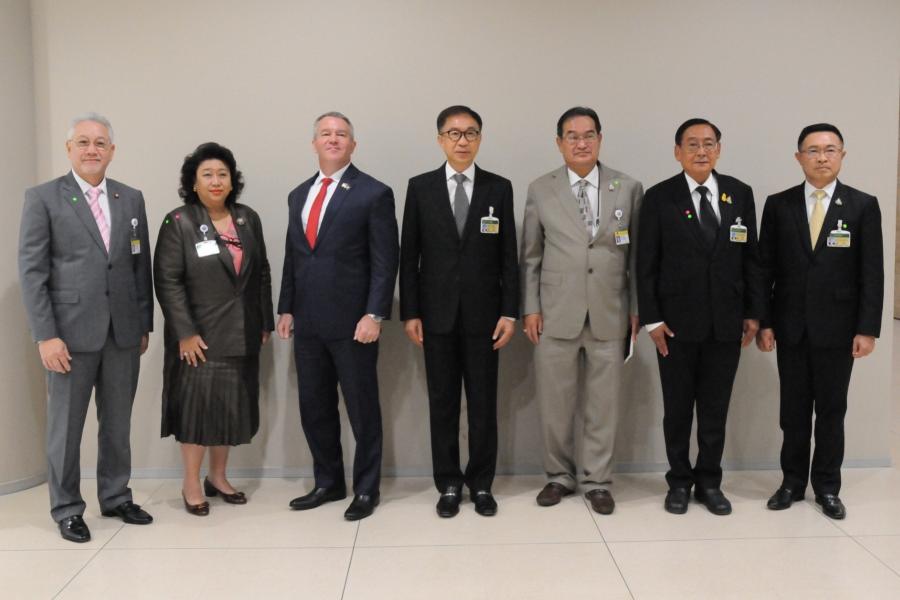 | วันอังคารที่ ๒๔ พฤศจิกายน ๒๕๖๓ เวลา ๑๐.๐๐ นาฬิกา ณ ห้องรับรอง ชั้น ๓ อาคารรัฐสภา นายสถิตย์ ลิ่มพงศ์พันธุ์ สมาชิกวุฒิสภา ในฐานะประธาน กลุ่มมิตรภาพสมาชิกรัฐสภาไทย-สหรัฐอเมริกา และกรรมการบริหารและที่ปรึกษา กลุ่มมิตรภาพฯ ประกอบด้วย นายนิกร จำนง สมาชิกสภาผู้แทนราษฎร ในฐานะ รองประธานกลุ่มมิตรภาพฯ พล.ต.ท.ตรีทศ รณฤทธิวิชัย สมาชิกวุฒิสภา ในฐานะกรรมการบริหารกลุ่มมิตรภาพฯ นายเกียรติ สิทธีอมร สมาชิกสภาผู้แทน ราษฎร และ พล.อ.สุรพงษ์ สุวรรณอัตถ์ สมาชิกวุฒิสภา ในฐานะที่ปรึกษา กลุ่มมิตรภาพฯ พร้อมด้วยนางพิกุลแก้ว ไกรฤกษ์ สมาชิกวุฒิสภา ในฐานะ ประธานคณะ กมธ.การต่างประเทศ วุฒิสภา ให้เกียรติเข้าร่วมให้การรับรอง นายไมเคิล จอร์จ ดีซอมเบร เอกอัครราชทูตสหรัฐอเมริกาประจำประเทศไทย และคณะ ในโอกาสที่เอกอัครราชทูตฯ เข้ารับตำแหน่ง ในการนี้ นายสถิตย์ ลิ่มพงศ์พันธุ์ ได้แนะนำคณะกรรมการบริหาร ที่ปรึกษากลุ่มมิตรภาพฯ และ ประธานคณะ กมธ. การต่างประเทศ พร้อมทั้งแลกเปลี่ยนข้อมูลข่าวสาร รวมทั้งความคิดเห็นในด้านต่าง ๆ อาทิ ความร่วมมือด้านการค้าและการลงทุน การแพทย์ การทหาร และการอนุรักษ์ทรัพยากรธรรมชาติ อันจะเป็นประโยชน์ ต่อการส่งเสริมความสัมพันธ์และความร่วมมือของทั้งสองประเทศให้แน่นแฟ้น ยิ่งขึ้นต่อไป |