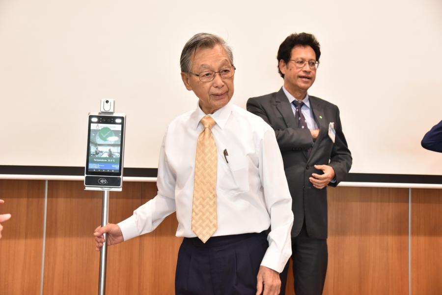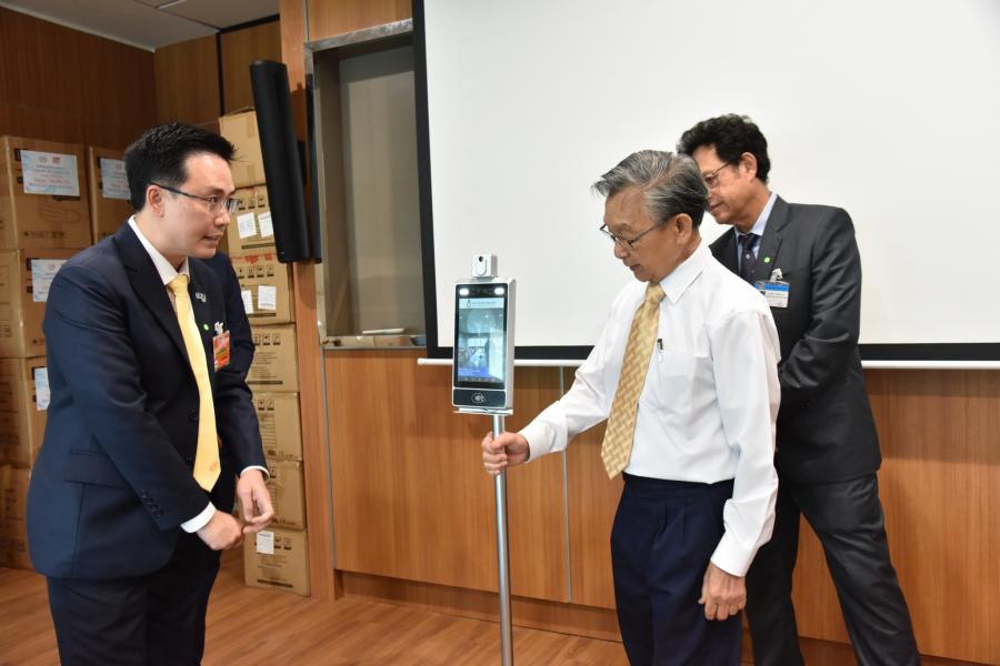 วันศุกร์ที่ ๔ ธันวาคม ๒๕๖๓ เวลา ๑๓.๑๕ นาฬิกา ณ ห้องประชุม ประธานรัฐสภา ชั้น ๓ อาคารรัฐสภา นายชวน หลีกภัย ประธานรัฐสภา ในฐานะประธานสภาสถาบันพระปกเกล้า รับมอบเครื่องวัดอุณหภูมิด้วยวิธี การสแกนใบหน้า จำนวน ๑ เครื่อง จากนายวรวีร์ วีรคเชนทร์ กรรมการผู้จัดการ บริษัท คเชนทร์ ดิจิทัล จำกัด เพื่อให้สถาบันพระปกเกล้า ใช้สำหรับเฝ้าระวัง และป้องกันโรคติดเชื้อไวรัสโควิด-๑๙ สำหรับเครื่องวัดอุณหภูมิดังกล่าวเป็นเครื่องเซ็นเซอร์วัดอุณหภูมิ มีความ คลาดเคลื่อน +/- ๐.๓ องศาเซลเซียส หน้าจอสัมผัส ๘ นิ้ว สำหรับแสดงผลการ วัดอุณหภูมิ และยังสามารถอ่านบัตร NFC (Near Field Communication) ได้ โดยมี นพ.สุกิจ อัถโถปกรณ์ ที่ปรึกษาประธานสภาผู้แทนราษฎร ร่วมรับมอบ ทั้งนี้ นายชวน หลีกภัย ได้ชมการสาธิตวิธีการใช้งานและทดลองใช้งานแล้ว เห็นว่าเครื่องดังกล่าวมีความสะดวกต่อการใช้งาน โดยในอนาคตเมื่อได้สำรวจ จำนวนประตูทางเข้า - ออก อาคารรัฐสภา แล้ว จะขอความอนุเคราะห์เครื่องวัด อุณหภูมิดังกล่าวมาใช้คัดกรองบุคคลเข้า - ออก อาคารรัฐสภาเพิ่มเติมจาก ที่รัฐสภามีอยู่ เพื่อให้มาตรการในการป้องกันการแพร่ระบาดของเชื้อไวรัส โควิด-๑๙ มีความเข้มข้นมากยิ่งขึ้น