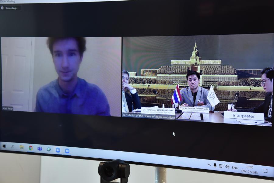 ประธานคณะ กมธ. การพัฒนาการเมือง การสื่อสารมวลชน และการมีส่วนร่วมของประชาชน ให้สัมภาษณ์สหภาพรัฐสภาผ่านสื่ออิเล็กทรอนิกส์เพื่อประกอบการจัดทำรายงานรัฐสภาเพื่อประกอบการจัดทำรายงานรัฐสภาระดับโลก ฉบับที่ ๓