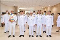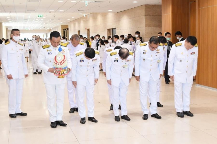 ประดับพุ่มดอกไม้ถวายบังคมพระรูปต้นแบบพระบาทสมเด็จพระปกเกล้าเจ้าอยู่หัว ในนาม พรรคภูมิใจไทย