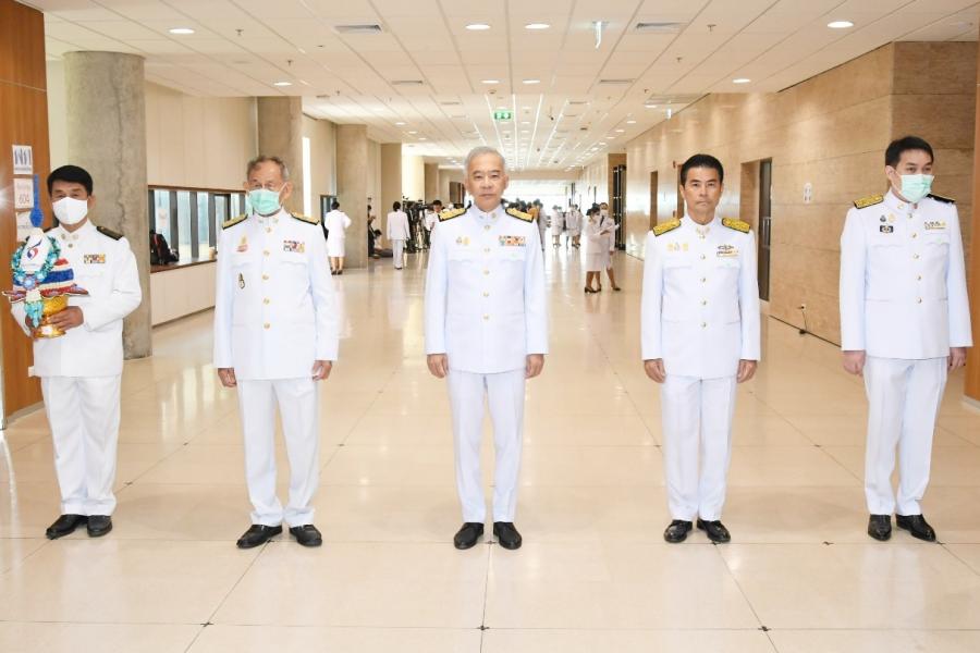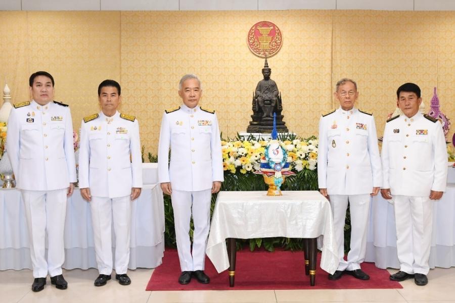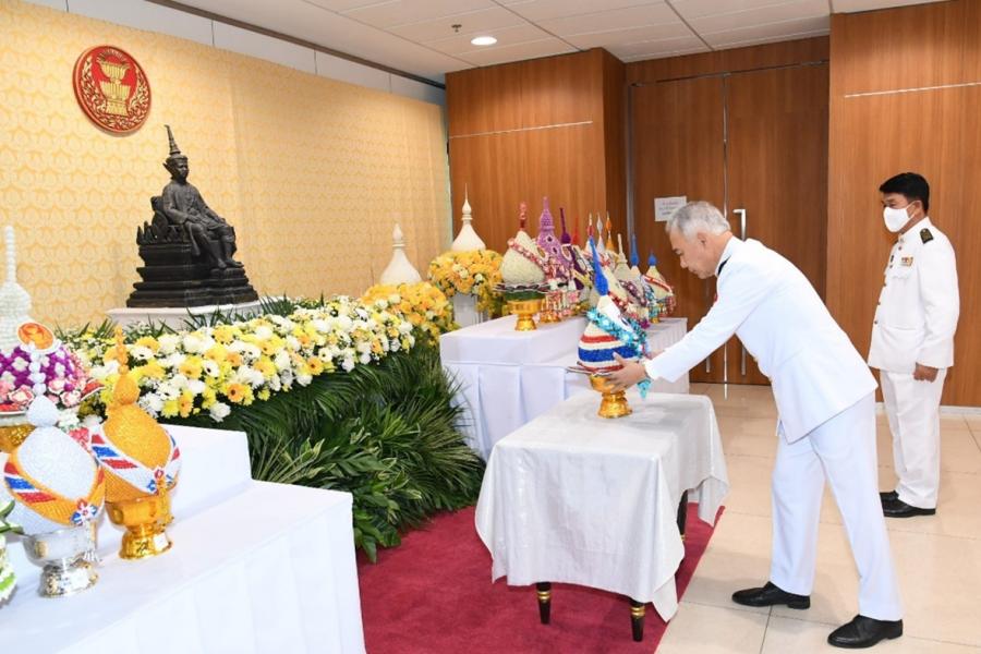 สมาชิกสภาผู้แทนราษฎรและสมาชิกพรรค วางพานประดับพุ่มดอกไม้ถวายบังคมพระรูปต้นแบบพระบาท