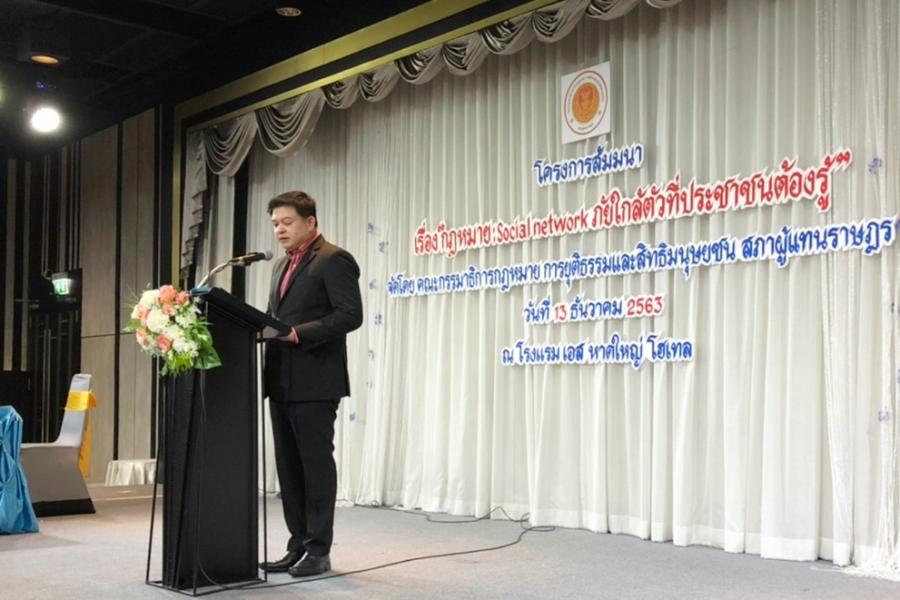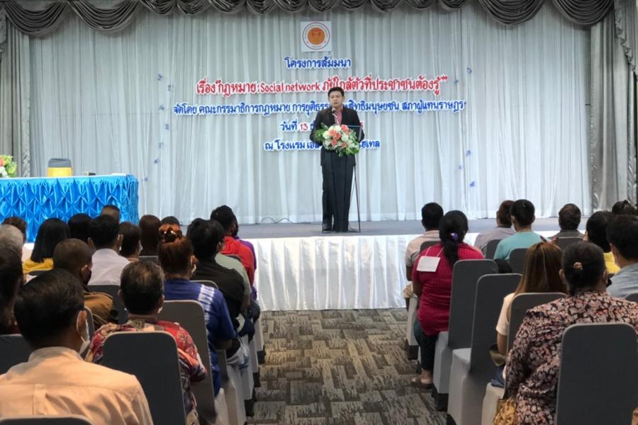 ในพิธีเปิดการสัมมนาเรื่อง กฎหมาย : Social Network ภัยใกล้ตัวที่ประชาชนต้องรู้ เพื่อให้ผู้เข้าร่วม