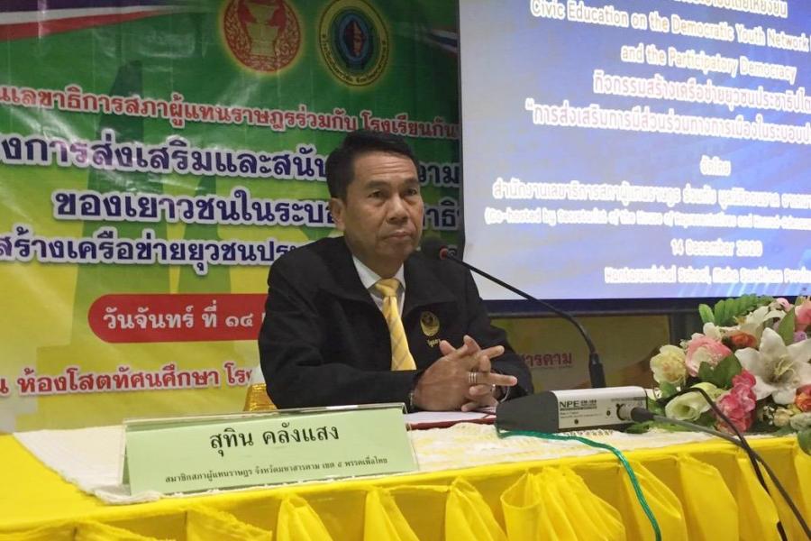 | วันจันทร์ที่ ๑๔ ธันวาคม ๒๕๖๓ เวลา ๐๙.๐๐ นาฬิกา ณ โรงเรียนกันทรวิชัย อ.กันทรวิชัย จ.มหาสารคาม นายสุทิน คลังแสง สมาชิกสภาผู้แทนราษฎร จ.มหาสารคาม พรรคเพื่อไทย ให้เกียรติเป็นประธานในพิธีเปิด โครงการส่งเสริมและสนับสนุนความเป็นพลเมืองของเยาวชนในระบอบประชาธิปไตยเพื่อพัฒนาประชาธิปไตย ให้ยั่งยืน กิจกรรมสร้างเครือข่ายยุวชนประชาธิปไตย "การส่งเสริมการมีส่วนร่วมทางการเมืองในระบอบ ประชาธิปไตย" โดยมี น.ส.สิตาวีร์ ธีรวิรุฬห์ ผู้อำนวยการสำนักสารสนเทศ กล่าวรายงาน และนายสำอางค์ จันทนนตรี ผู้อำนวยการโรงเรียนกันทรวิชัย กล่าวต้อนรับ จากนั้น นายสุทิน คลังแสง บรรยายพิเศษเรื่อง "บทบาท อำนาจหน้าที่ของรัฐสภากับการส่งเสริมประชาธิปไตย" โดยกิจกรรมดังกล่าวมีนักเรียน ระดับชั้นมัธยมศึกษาตอนปลาย จำนวน ๑๓๐ คน จากโรงเรียนกันทรวิชัย โรงเรียนเขวาไร่ศึกษา และ โรงเรียนสารคามพิทยาคม จ.มหาสารคาม เข้าร่วม โอกาสนี้ น.ส.สิตาวีร์ธีรวิรุฬห์ ผู้อำนวยการ สำนักสารสนเทศ ได้มอบของที่ระลึกเพื่อแสดงความขอบคุณแก่นายสุทิน คลังแสง สมาชิกสภาผู้แทน ราษฎร และนายสำอางค์ จันทนนตรี ผู้อำนายการโรงเรียนกันทรวิชัย ซึ่งกิจกรรมสร้างเครือข่ายยุวชน ประชาธิปไตยนั้น สำนักงานเลขาธิการสภาผู้แทนราษฎร จัดขึ้นโดยมีวัตถุประสงค์เพื่อส่งเสริมและ สนับสนุนให้เยาวชนคนรุ่นใหม่มีความรู้ ความเข้าใจเกี่ยวกับบทบาทอำนาจหน้าที่ของรัฐสภา สภาผู้แทนราษฎรกับการส่งเสริมประชาธิปไตย รวมทั้งเข้าใจบทบาทการมีส่วนร่วมทางการเมือง ในรูปแบบต่าง ๆ อันเป็นการยกระดับจากประชาชนขึ้นเป็นพลเมือง เป็นกำลังสำคัญของเมือง ในการพัฒนาประชาธิปไตย ตลอดจนส่งเสริมให้ยุวชนประชาธิปไตยในทุกภูมิภาคของ ประเทศทำงานร่วมกับภาคีที่เกี่ยวข้องเพื่อสร้างเครือข่ายความร่วมมืออย่างเป็นระบบ และนำความรู้ ที่ได้รับจากการเข้าร่วมกิจกรรมไปเผยแพร่ต่อในครอบครัวและชุมชน ซึ่งจะเป็นพลังสำคัญที่จะช่วย ขับเคลื่อนการพัฒนาประเทศในอนาคต ต่อไป |