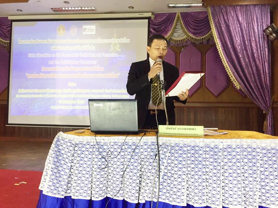 กับการส่งเสริมประชาธิปไตย" โดยมีนักเรียนระดับชั้นมัธยมศึกษาตอนปลาย