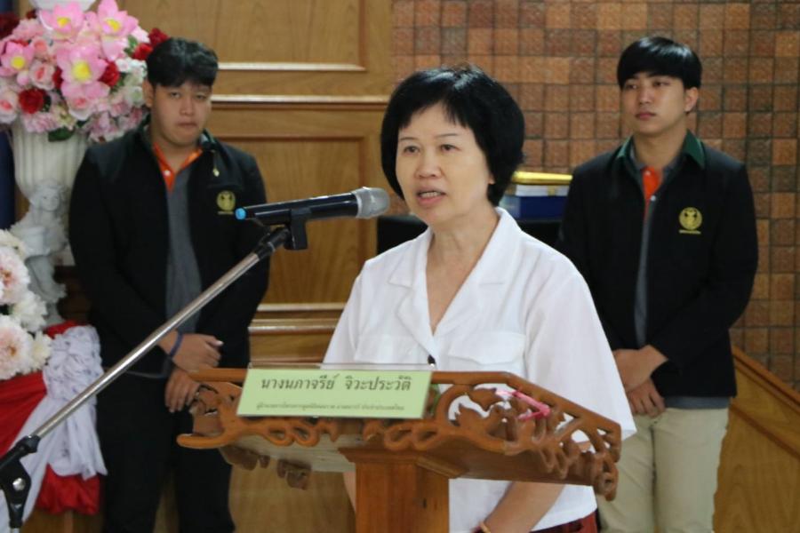 พึ่งญาติ ผู้แทนผู้อำนวยการโรงเรียนอยุธยานุสรณ์ กล่าวต้อนรับผู้เข้าร่วมกิจกรรม
