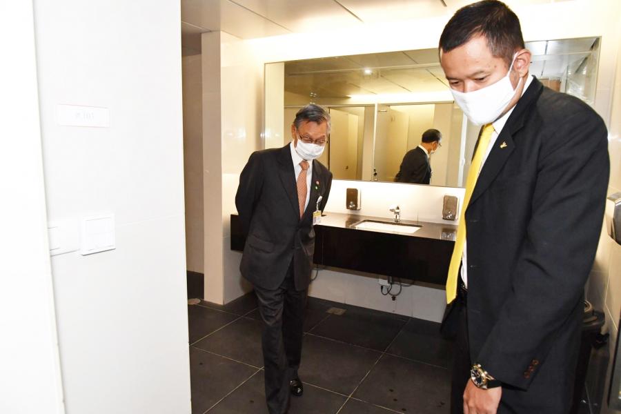 ประธานรัฐสภาและประธานสภาผู้แทนราษฎร ตรวจสอบความเรียบร้อยของระบบสาธารณูปโภคบริเวณชั้น ๑ อาคารรัฐสภา