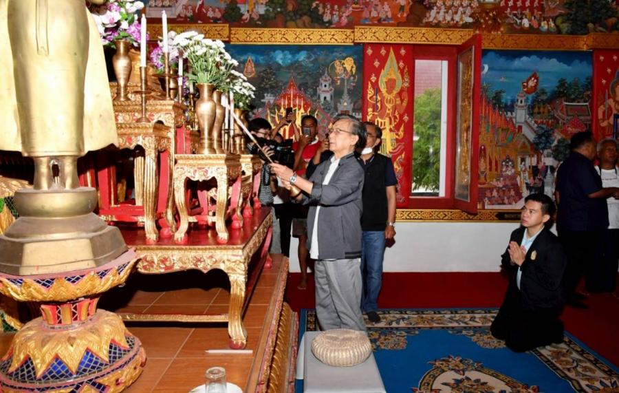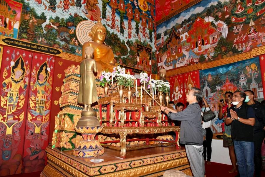 วันอาทิตย์ที่ ๒๐ ธันวาคม ๒๕๖๓ เวลา ๐๖.๓๐ นาฬิกา ณ สถานีรถไฟพัทลุง อ.เมืองพัทลุง จ.พัทลุง นายชวน หลีกภัย ประธานรัฐสภาและประธานสภาผู้แทนราษฎร พบปะพูดคุยกับประชาชนที่ใช้บริการรถไฟ และประชาชนในพื้นที่ รวมทั้งให้กำลังเจ้าหน้าที่ในการปฏิบัติงานและให้บริการแก่ประชาชน ตลอดจน ผู้ประกอบอาชีพค้าขายและให้บริการภายในสถานีรถไฟ โดยมี นายนริศ ขำนุรักษ์ สมาชิกสภาผู้แทนราษฎร จังหวัดพัทลุง พรรคประชาธิปัตย์ และนายนิพิฎฐ์ อินทรสมบัติ รองหัวหน้าพรรคประชาธิปัตย์ ให้การต้อนรับ ในการนี้ นายอิสระ เสรีวัฒนวุฒิ สมาชิกสภาผู้แทนราษฎร นายสมบูรณ์ อุทัยเวียนกุล เลขานุการประธาน สภาผู้แทนราษฎร และ น.ส.ศิริภา อินทวิเชียร ผู้ช่วยเลขานุการประธานสภาผู้แทนราษฎร ร่วมด้วย และในเวลา ๐๗.๓๐ นาฬิกา ณ วัดไทรห้อย อ.เมืองพัทลุง จ.พัทลุง นายชวน หลีกภัย กราบนมัสการ เจ้าอาวาสวัดไทรห้อย และชมจิตรกรรมฝาผนังเกี่ยวกับทศชาติชาดกภายในโบสถ์ ซึ่งดำเนินการมา ๒ ปี แล้ว แต่ยังไม่แล้วเสร็จ และเพื่อให้เข้ากับสถานการณ์ปัจจุบัน นายชวน หลีกภัย ได้วาดภาพโทรศัพท์มือถือ ไว้ในมือภาพเด็ก และวาดหน้ากากอนามัยบนใบหน้าภาพผนังอุโบสถ โอกาสนี้ นายชวน หลีกภัย ได้ถวาย หน้ากากอนามัยแด่เจ้าอาวาส และมอบให้แก่ประชาชนในพื้นที่ที่มาทำบุญที่วัดด้วย โดยวัดไทรห้อยเดิมชื่อ "วัดท่าชะมวง" เนื่องจากเป็นวัดประจำหมู่บ้านบ้านท่าชะมวง ซึ่งอยู่ห่าง จากบริเวณพื้นที่วัดในปัจจุบันไปทางด้านทิศใต้ประมาณ ๕๐๐ เมตร ปัจจุบันได้ย้ายวัดมาอยู่ริมคลองใกล้กับ ต้นไทรใหญ่ มีรากย้อยเป็นระย้ามากมาย เรียกกันว่าไทรห้อย จึงเรียกชื่อวัดใหม่ตามชื่อต้นไทรว่า "วัดไทรห้อย" วัดไทรห้อยสร้างขึ้นเป็นวัดตั้งแต่ปี ๒๓๕๑ เป็นแหล่งศิลปกรรมที่สำคัญและมีคุณค่า ทั้งที่เป็นโบราณวัตถุ และโบราณสถาน ได้แก่ สมุดข่อย ไหเคลือบเขียวเครื่องถ้วยจีน ตะเกียงน้ำมัน และกุฏิทรงเรือนไทยปักษ์ใต้ จำนวน ๒ หลัง