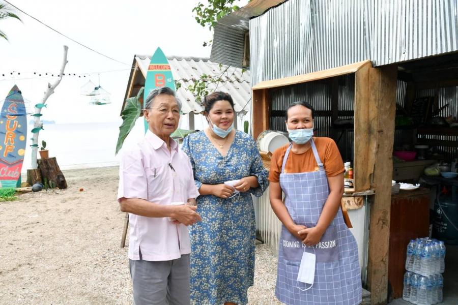 และผู้ประกอบอาชีพค้าขายในพื้นที่บริเวณชายหาดเจ้าสำราญ พร้อมทั้งสอบถามถึงความเป็นอยู่