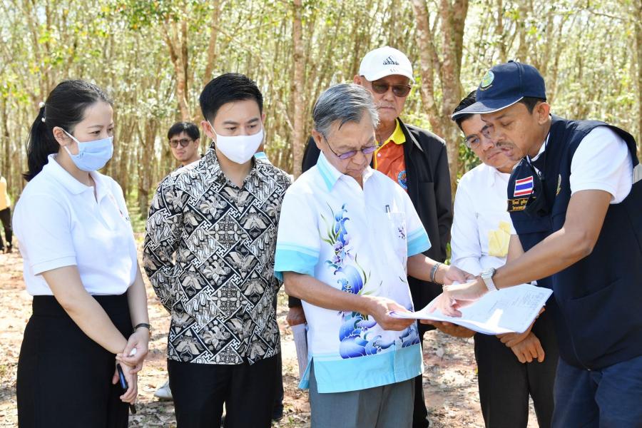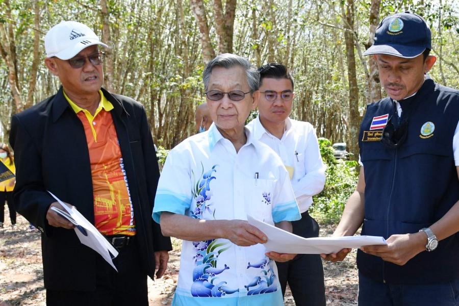 ประธานรัฐสภาและประธานสภาผู้แทนราษฎร รับฟังบรรยายสรุปผลการดำเนินงานการขุดสระน้ำภายในบริเวณพื้นที่ศูนย์วิจัยและพัฒนาการเกษตรตรัง