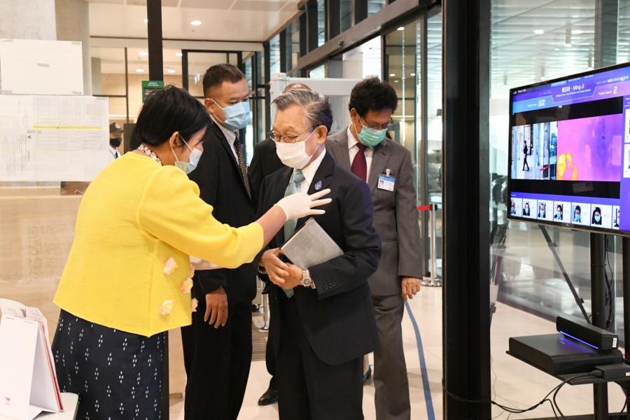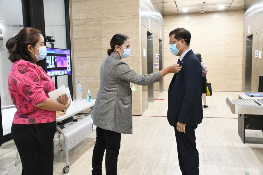รับการตรวจวัดอุณหภูมิด้วย ทั้งนี้ เพื่อความปลอดภัยและคุณภาพชีวิตที่ดีของสมาชิกสภาผู้แทนราษฎร บุคลากรของสำนักงานเลขาธิการสภาผู้แทนราษฎร และบุคคลในวงงานรัฐสภา ในการเฝ้าระวังและป้องกันการแพร่ระบาดของโรคโควิด-๑๙ อย่างเข้มข้นและต่อเนื่อง