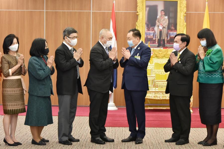 รองประธานสภาผู้แทนราษฎร คนที่หนึ่ง พร้อมด้วย นายอนันต์ ผลอำนวย ประธานคณะกมธ. กิจการ สภาผู้แทนราษฎร รับการอวยพรเนื่องในโอกาสเทศกาลวันขึ้นปีใหม่ พ.ศ. ๒๕๖๔ จาก นางพรพิศ เพชรเจริญ เลขาธิการสภาผู้แทนราษฎร นายนัฑ ผาสุข เลขาธิการวุฒิสภา พร้อมด้วยคณะผู้บริหารของสํานักงานเลขาธิการสภาผู้แทนราษฎรและสำนักงานเลขาธิการวุฒิสภา