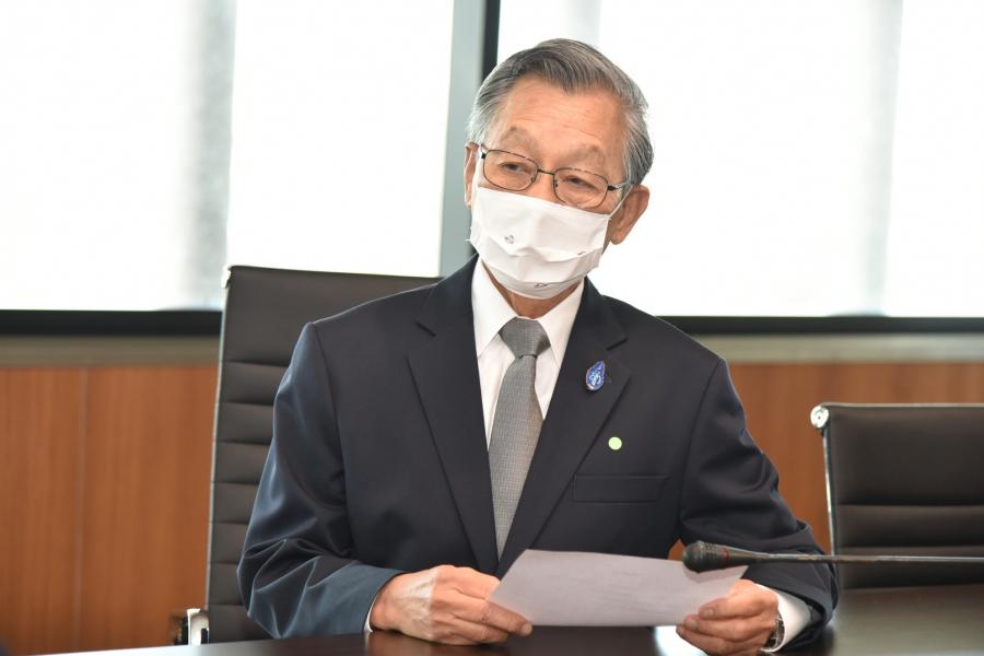 ประธานรัฐสภา รับการอวยพรจาก ผู้ช่วยอธิการบดีมหาวิทยาลัยเทคโนโลยีราชมงคล กรุงเทพ และหัวหน้าสาขาวิชาการโรงเเรม คณะศิลปศาสตร์ มหาวิทยาลัยเทคโนโลยีราชมงคลกรุงเทพ เนื่องในโอกาสเทศกาลปีใหม่ พ.ศ. ๒๕๖๔
