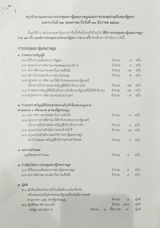 ได้มีการประชุมสภาผู้แทนราษฎร รวม ๔๒ ครั้ง และมีการประชุมร่วมกันของรัฐสภารวม ๘ ครั้ง