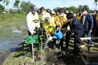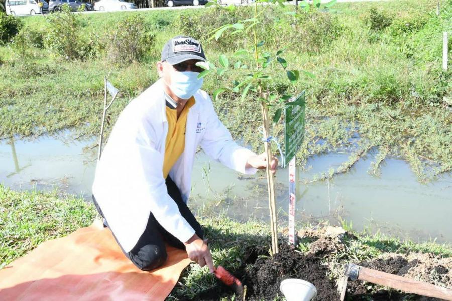 วันอาทิตย์ที่ ๒๗ ธันวาคม ๒๕๖๓ เวลา ๐๙.๒๐ นาฬิกา ณ บริเวณถนนเลียบคลองชลประทาน หมู่ที่ ๔ ต.นาข้าวเสีย อ.นาโยง จ.ตรัง นายชวน หลีกภัย ประธานรัฐสภาและประธานสภาผู้แทนราษฎร เป็นประธานเปิดกิจกรรมเพิ่มพื้นที่สีเขียวในชุมชนภายใต้โครงการปลูกป่า และป้องกันไฟป่า โดยมี นายขจรศักดิ์ เจริญโสภา ผู้ว่าราชการจังหวัดตรัง กล่าวรายงาน จากนั้นประธานรัฐสภามอบกล้าไม้ให้แก่ หน่วยงาน องค์กร และผู้นำชุมชน ต่อมาประธานรัฐสภาปลูกต้นยมชวนพร้อมทั้งเยี่ยมชมต้นไม้ในบริเวณพื้นที่ดังกล่าว โอกาสนี้ นายชวน หลีกภัย กล่าวตอนหนึ่งว่าต้นไม้ที่ปลูกในวันนี้คือ ต้นยมชวน เป็นพันธุ์ไม้ที่มีถิ่นกำเนิดในทวีปแอฟริกาเป็นต้นไม้ในตระกูลที่มีค่าและมีแนวโน้มใกล้จะสูญพันธุ์ในอนาคต ซึ่งตนได้รับมอบจากนายกรัฐมนตรีเวียดนาม เมื่อครั้งเดินทางเยือนประเทศเวียดนามอย่างเป็นทางการในปี ๒๕๓๖ ซึ่งต่อมาได้นำมาเพาะพันธุ์ที่ จ.เชียงใหม่ และ อ.แม่สาย จ.เชียงราย เนื่องจากเห็นว่าระดับเส้นศูนย์สูตรระดับเดียวกับฮานอย และบางส่วนได้นำมาปลูกที่สวนพฤกษศาสตร์ตรัง และมีการขอเพิ่มเติมมาปลูกที่โรงเรียนน้ำผุด และมหาวิทยาลัยสงขลานครินทร์ โดยชื่อต้นยมชวนนั้นมาจากการที่ได้ให้ผู้เชี่ยวชาญด้านพรรณไม้สำรวจแล้วพบว่าใบของต้นยมชวนมีลักษณะของตระกูลยม และใบเหมือนมะฮอกกานี และสร้อยชื่อว่า ชวน ตามชื่อของตนจึงเรียกกันว่า "ต้นยมชวน" ซึ่งเป็นต้นไม้ที่ร่มรื่นสำคัญที่สุดคือ การได้ออกซิเจน โดยเฉพาะอย่างยิ่งที่จังหวัดตรัง มีผลของค่า PM ๒.๕ น้อยที่สุดเป็นอันดับ ๑ ของประเทศไทย ซึ่งเป็นพื้นที่ที่อากาศดีที่สุดอยู่ที่ อ.หาดสำราญ ทำให้ประชาชนในพื้นที่ได้รับอากาศบริสุทธิ์ โดยที่ผ่านมาประธานรัฐสภา ได้รณรงค์ให้ปลูกต้นไม้มาโดยตลอด เพื่อช่วยอนุรักษ์สิ่งแวดล้อม ในการนี้ นายสมบูรณ์ อุทัยเวียนกุล เลขานุการประธานสภาผู้แทนราษฎร ร่วมปลูกต้นยมชวนด้วย ซึ่งกิจกรรมดังกล่าวจัดโดยจังหวัดตรังร่วมกับโครงการชลประทานตรัง