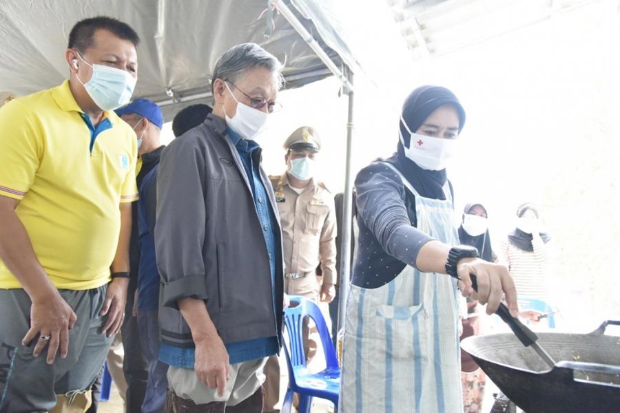 จากนั้นในเวลา ๑๐.๓๐ นาฬิกา ประธานรัฐสภา ตรวจเยี่ยมความเสียหายภายหลังจากน้ำลดระดับลงพร้อมทั้งให้กำลังใจกลุ่มเกษตรกรทำนา ในพื้นที่บริเวณศูนย์บริหารราชการ ต.ปะกาฮะรัง อ.เมือง จ.ปัตตานี และสอบถามถึงปัญหาอุปสรรคในการดำเนินชีวิตประจำวัน พร้อมทั้งประกอบอาหารให้แก่ผู้ประสบอุทกภัย