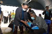 จากนั้น นายชวน หลีกภัย และคณะลงพื้นที่ช่วยเหลือผู้ประสบอุทกภัย ณ บ้านกือลองแตยอ ต.ม่วงเตี้ย อ.แม่ลาน จ.ปัตตานี และมอบข้าวสาร จำนวน ๑๕๐ ถุง เพื่อช่วยบรรเทาความเดือดร้อนให้กับพี่น้องประชาชนที่ได้รับผลกระทบในพื้นที่ดังกล่าว