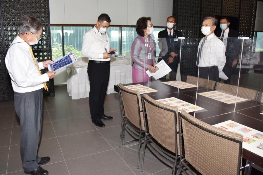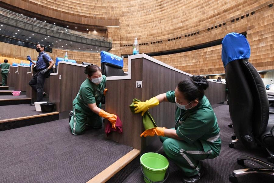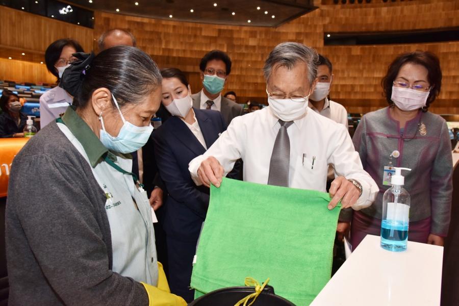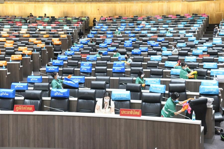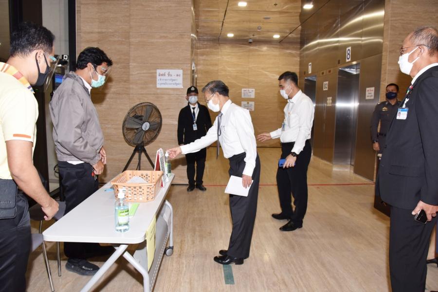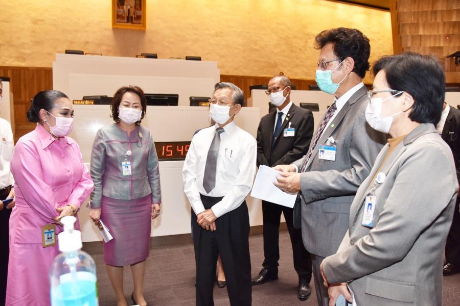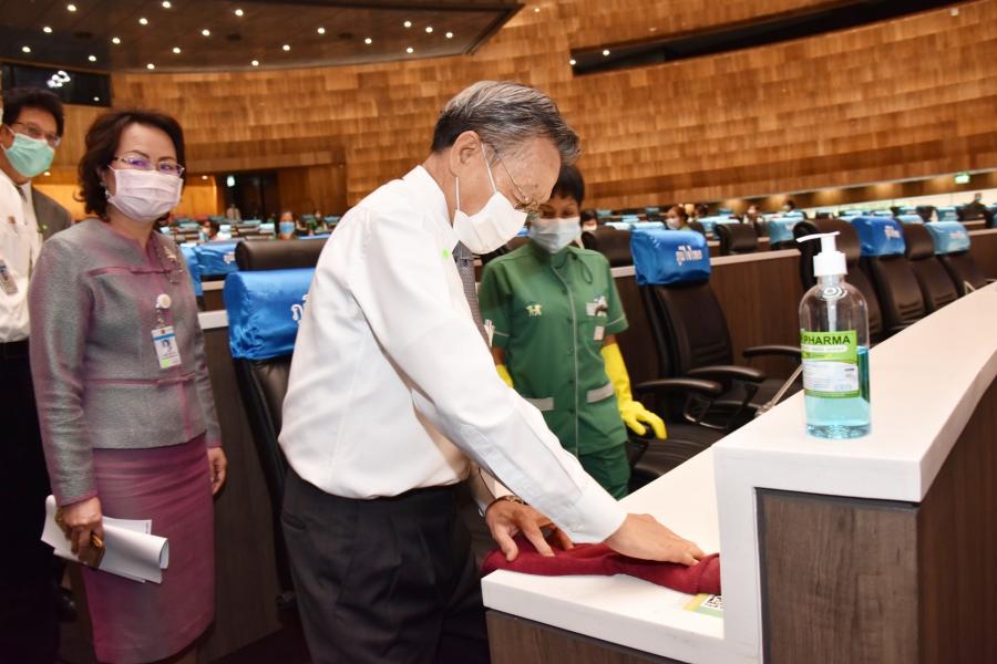 ประธานสภาผู้แทนราษฎร พร้อมด้วยคณะทำงานทางการเมืองของประธานสภาผู้แทนราษฎร และคณะผู้บริหารสำนักงานเลขาธิการสภาผู้แทนราษฎร ตรวจความเรียบร้อยการเตรียมความพร้อมและการปฏิบัติตามมาตรการป้องกันการแพร่ระบาดของโรคติดเชื้อไวรัสโคโรนา ๒๐๑๙ (โควิด-๑๙)