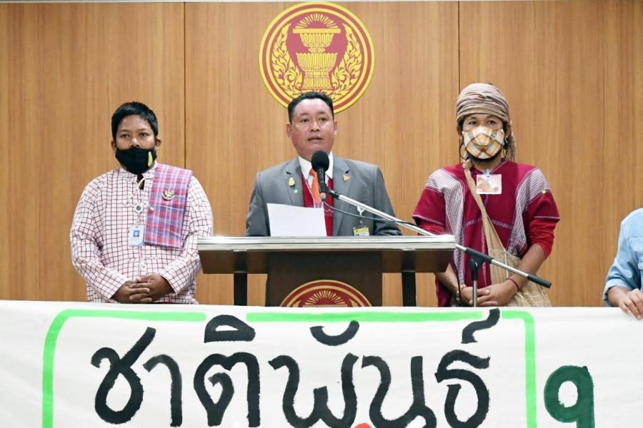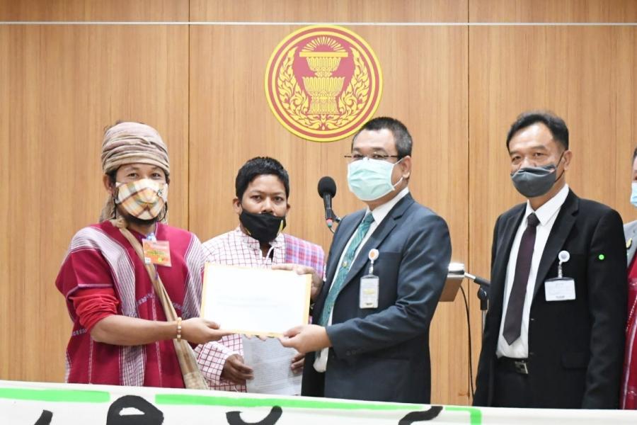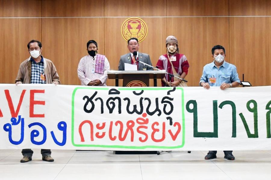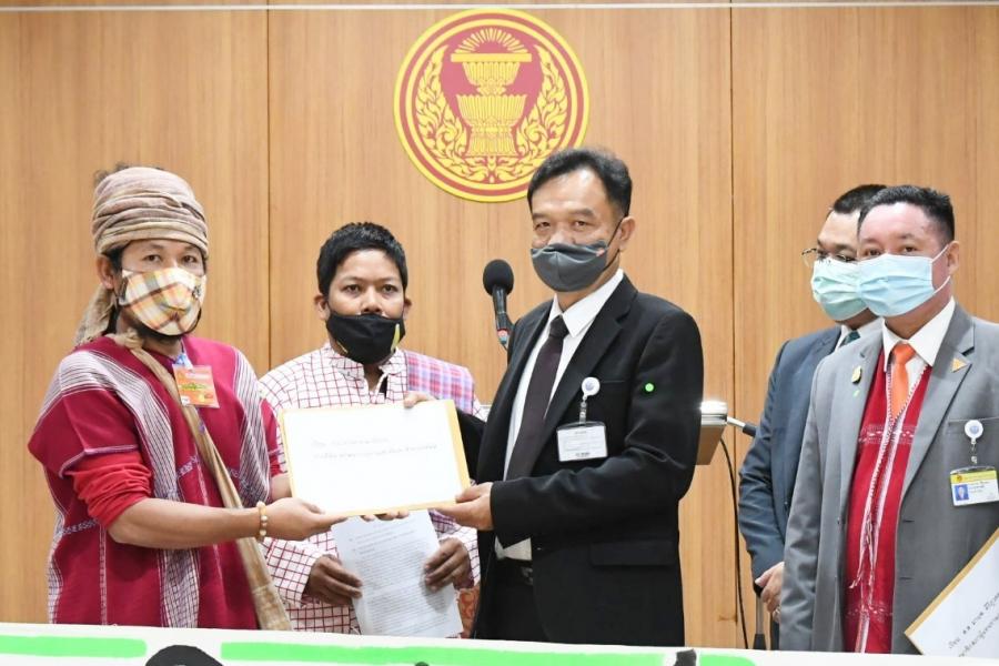 ประธานคณะ กมธ. การที่ดินทรัพยากรธรรมชาติและสิ่งแวดล้อม นายมานพ คีรีภูวดล ส.ส.พรรคก้าวไกลและ นายสุเทพ เอี่ยมคง ผู้บังคับบัญชากลุ่มงานคณะ กมธ.กิจการเด็ก เยาวชน สตรี ผู้สูงอายุ ผู้พิการ กลุ่มชาติพันธุ์ และผู้มีความหลากหลายทางเพศ สำนักกรรมาธิการ ๓ สำนักงานเลขาธิการสภาผู้แทนราษฎร รับยื่นหนังสือจาก นายเกรียงไกร ชีช่วง ผู้ประสานงานเครือข่ายกะเหรี่ยง เพื่อวัฒนธรรมและสิ่งแวดล้อม เขตงานตะนาวศรี