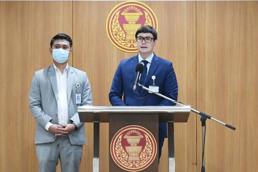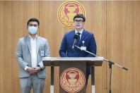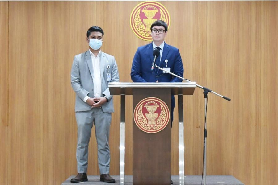 นายรังสิมันต์ โรม สมาชิกสภาผู้แทนราษฎร พรรคก้าวไกล แถลงข่าว