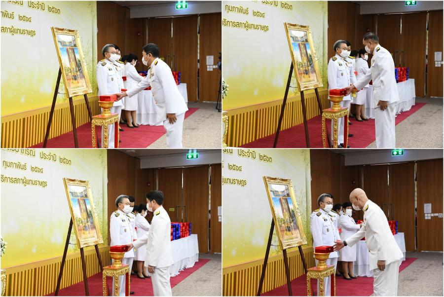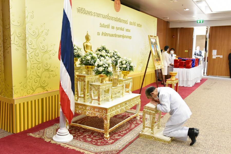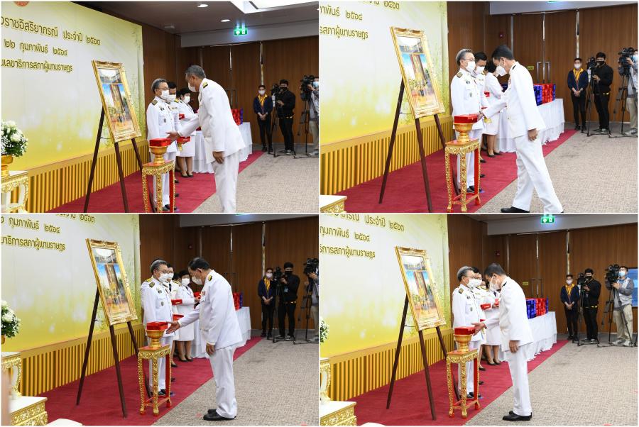 วันจันทร์ที่ 22 กุมภาพันธ์ 2564 เวลา 10.00 นาฬิกา ณ ห้องประชุม ชั้น 6 อาคารรัฐสภา ตามที่พระบาทสมเด็จพระเจ้าอยู่หัว ทรงพระกรุณาโปรดเกล้าฯ พระราชทานเครื่องราชอิสริยาภรณ์อันเป็นที่เชิดชูยิ่งช้างเผือกและเครื่องราชอิสริยาภรณ์อันมีเกียรติยศยิ่งมงกุฎไทย ประจำปี 2563 เนื่องในโอกาสพระราชพิธีเฉลิมพระชนมพรรษา วันที่ 28 กรกฎาคม 2563 และทรงพระกรุณาโปรดเกล้าฯ ให้ส่วนราชการและหน่วยงานต่าง ๆ จัดพิธีรับพระราชทานเครื่องราช อิสริยาภรณ์หน้าพระบรมฉายาลักษณ์พระบาทสมเด็จพระเจ้าอยู่หัว นั้น