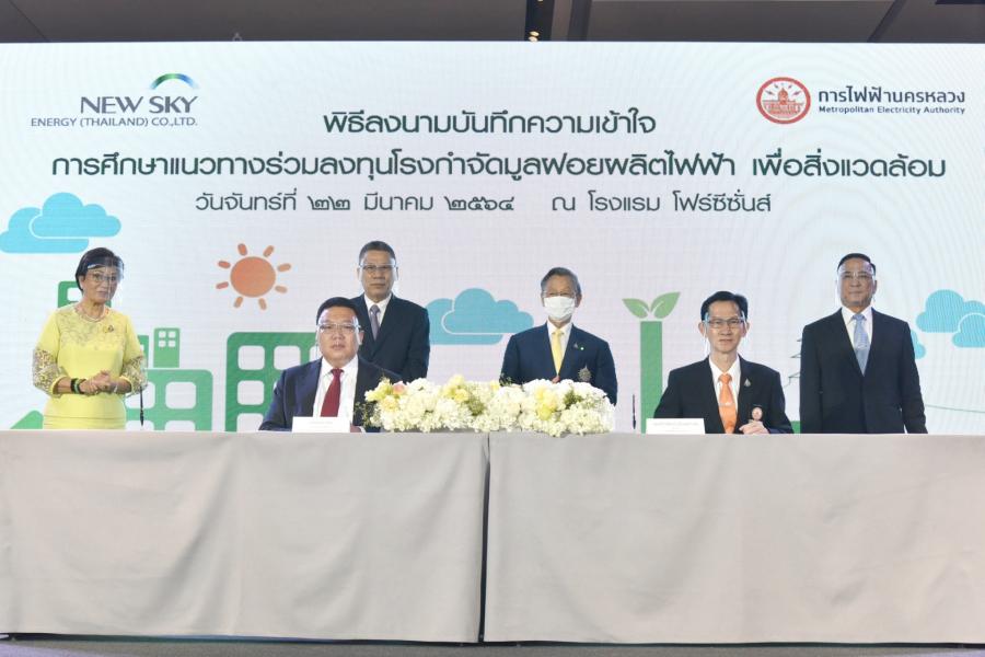 ประธานรัฐสภา เป็นประธานในพิธีลงนามบันทึกความเข้าใจการศึกษาแนวทางร่วมลงทุนโรงกำจัดมูลฝอยผลิตไฟฟ้าเพื่อสิ่งแวดล้อมระหว่างบริษัท นิวสกาย เอ็นเนอร์จี (ประเทศไทย) จำกัด กับการไฟฟ้านครหลวง (กฟน.) ณ โรงแรมโฟร์ซีซั่น