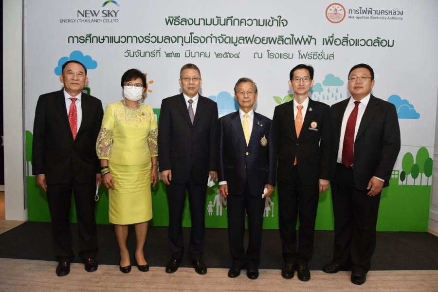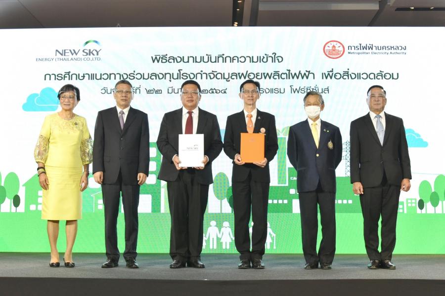วันจันทร์ที่ 22 มีนาคม 2564 เวลา 10.30 นาฬิกา ณ โรงแรมโฟร์ซีซั่น ถ. เจริญกรุง เขตสาธร กรุงเทพฯ นายชวน หลีกภัย ประธานรัฐสภาและประธานสภาผู้แทนราษฎร เป็นประธานในพิธีลงนามบันทึกความเข้าใจการศึกษาแนวทางร่วมลงทุนโรงกำจัดมูลฝอยผลิตไฟฟ้าเพื่อสิ่งแวดล้อมระหว่างบริษัท นิวสกาย เอ็นเนอร์จี (ประเทศไทย) จำกัด กับการไฟฟ้านครหลวง (กฟน.) โดยมี คุณหญิงกัลยา โสภณพนิช รมช.ศึกษาธิการ น.ส.ศิริภา อินทวิเชียร ผู้ช่วยเลขานุการ ประธานสภาผู้แทนราษฎร และแขกผู้มีเกียรติร่วมพิธี